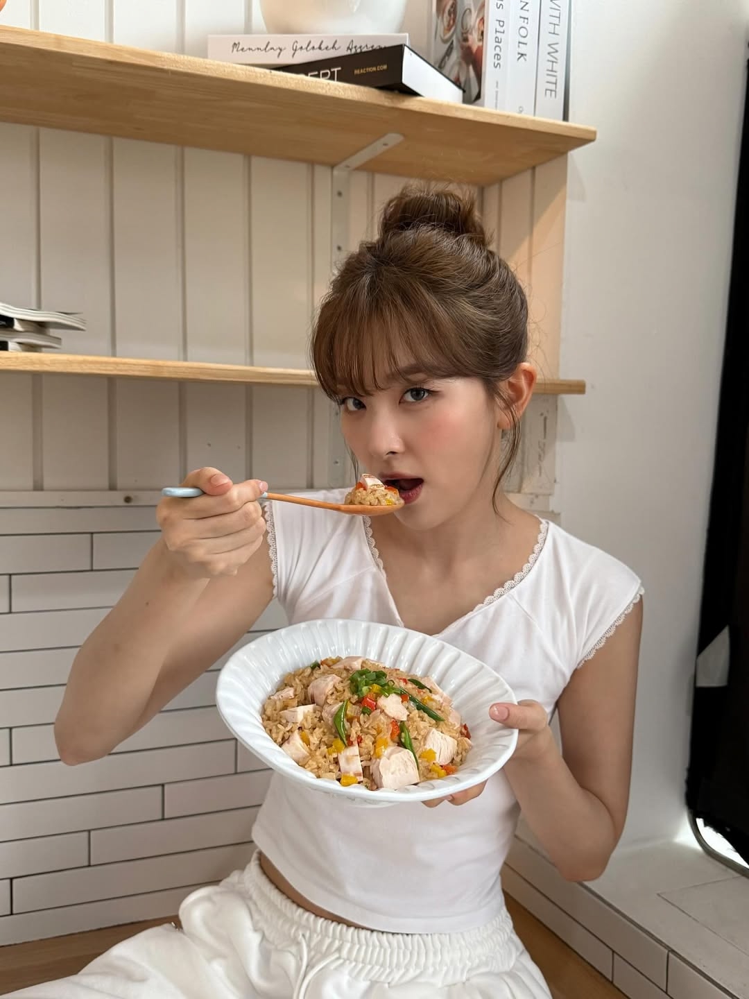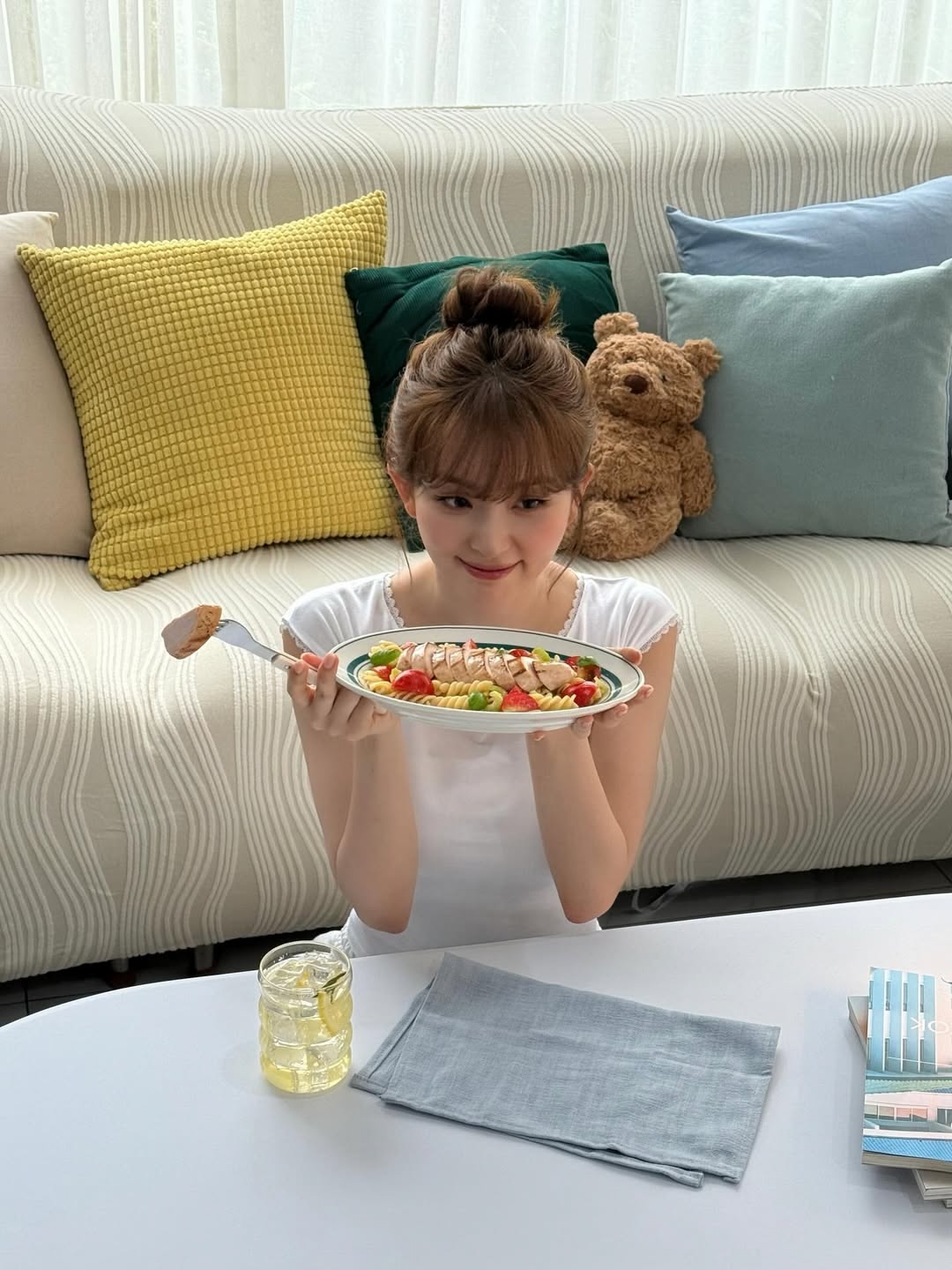 Ынче купила в подарок для Чэвон и Юнджин напитки, но слишком стеснялась отдать их с запиской благодарности, поэтому сама все выпила. Странно, но разделение было кореянки в одной комнате, японки в другой