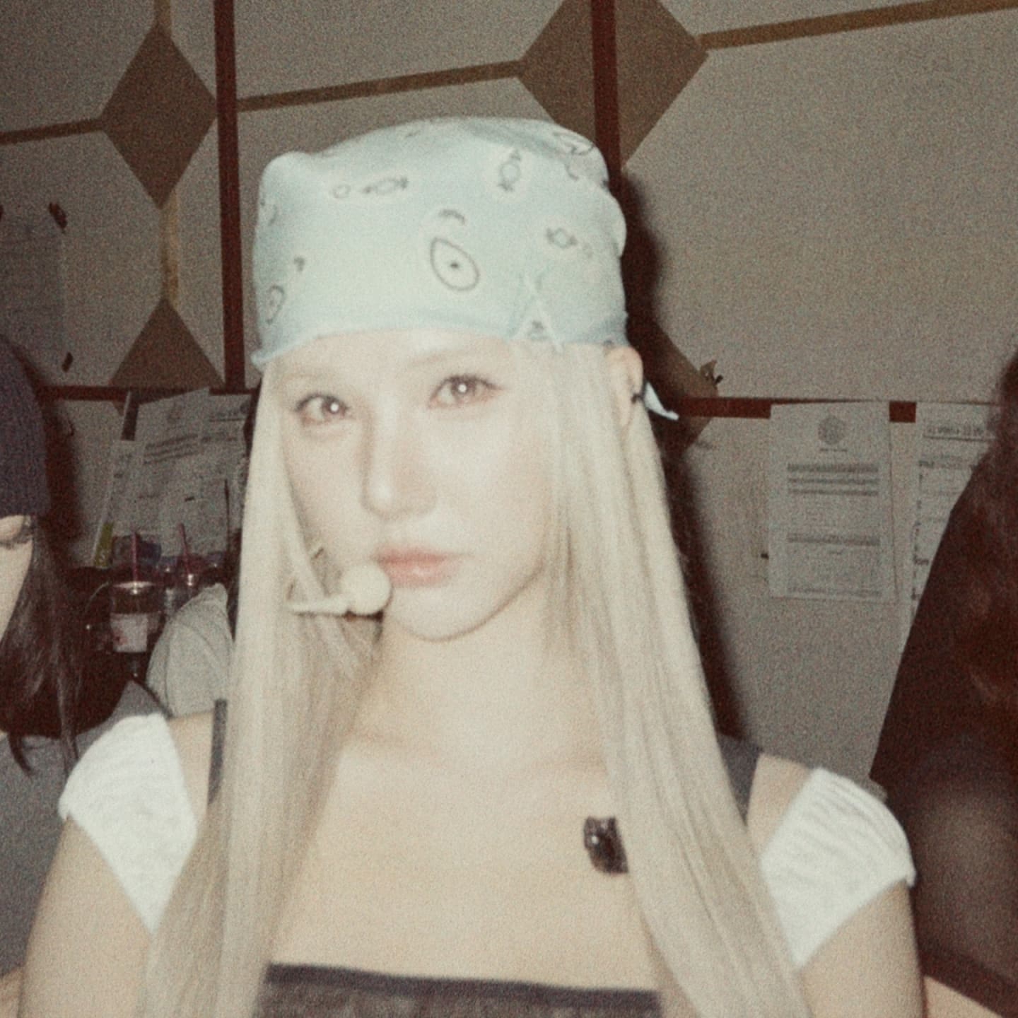 Ради её безопасности я всё же удалила фотографию, но она была очень милая. Больше 5 минут она болтала с моим другом. Ханни сказала, что я могу опубликовать фото, но попросила сделать это на следующий день, она правда была очень дружелюбной. Ханни выглядела идеально даже без макияжа, мы также удивились, потому что она покрасила волосы, но мой друг всё равно смог узнать её хехех.