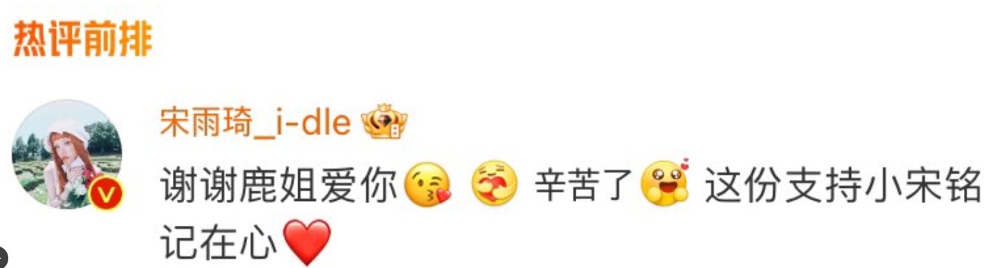 Одна из самых популярных китайских актрис BAILU поддержала камбек YUQI. Подружка Yuqi репостнула в своем WEIBO(30 миллионов подписчиков) информацию про альбом, купила 835 копий альбома, а так же поделилась что заглавка ей очень понравилась. Yuqi уже успела поблагодарить ее за это под постом. На данный момент Bailu - одна из самых востребованных китайских актрис. В этом году уже вышло три дорамы с ней в главной роли. Yuqi рассказала что одну из них она смотрела в онгоинге и пыталась узнать спойлеры к концовке.