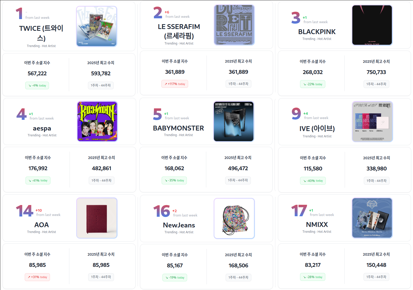 Вчера я слушала новый трек FIFTY FIFTY – клип такой милый… FIFTY FIFTY 2.0 держатся нормально. Их последний альбом продался 100k, а предыдущий титульный трек Pookie вошёл в чарт Circle. У них скоро фанмит, они ушли дальше от Cupid и строят новую карьеру аккуратно и спокойно…