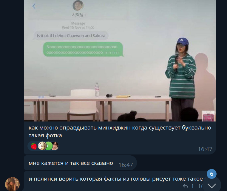 «В сообщениях видно, что она не хотела оставлять NewJeans в Source и всё время говорила, что хочет забрать их под свой лейбл. Из-за этой амбиции дебютный порядок изменился, а теперь она делает вид, будто её “предали”», – заявили в Source