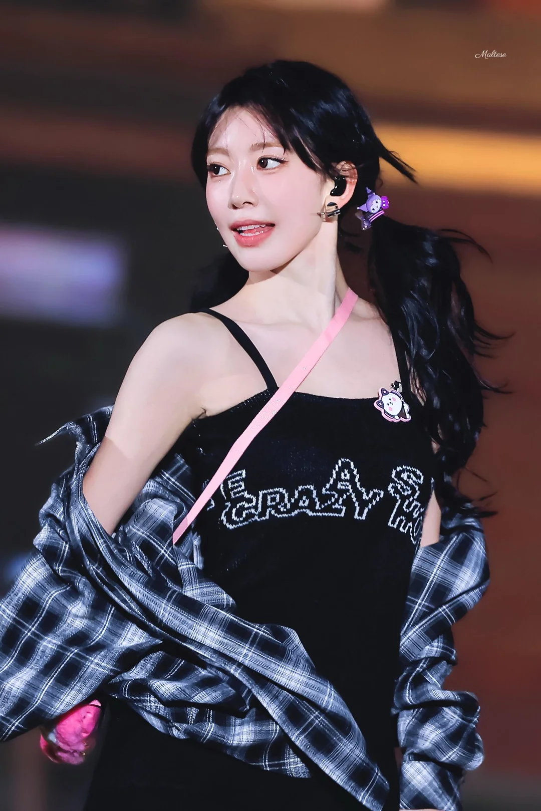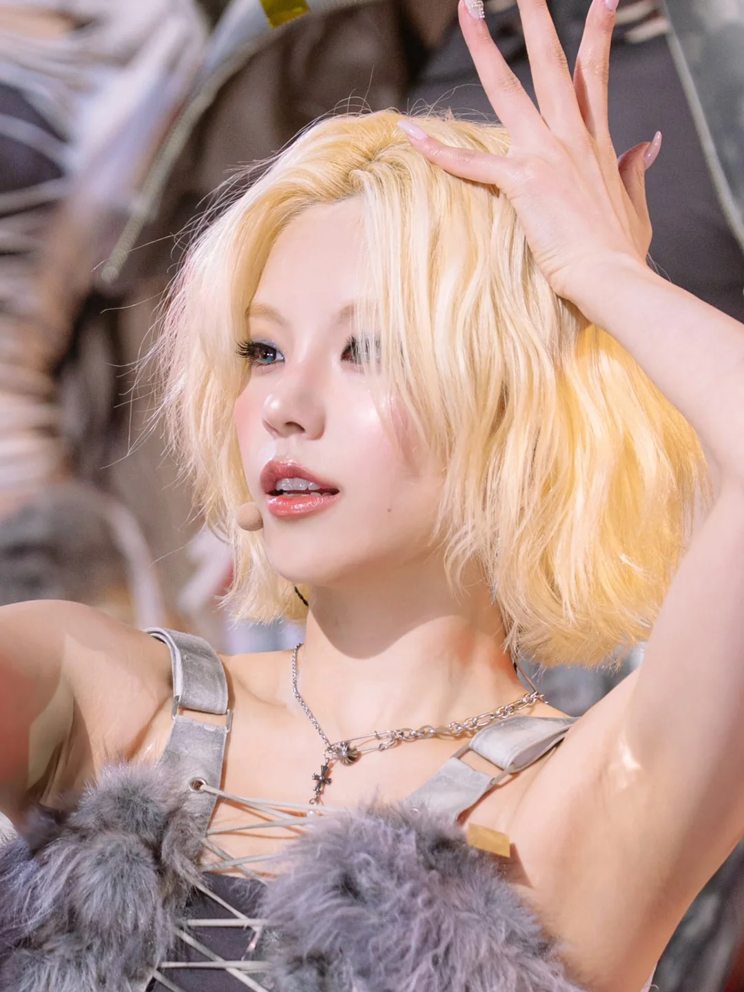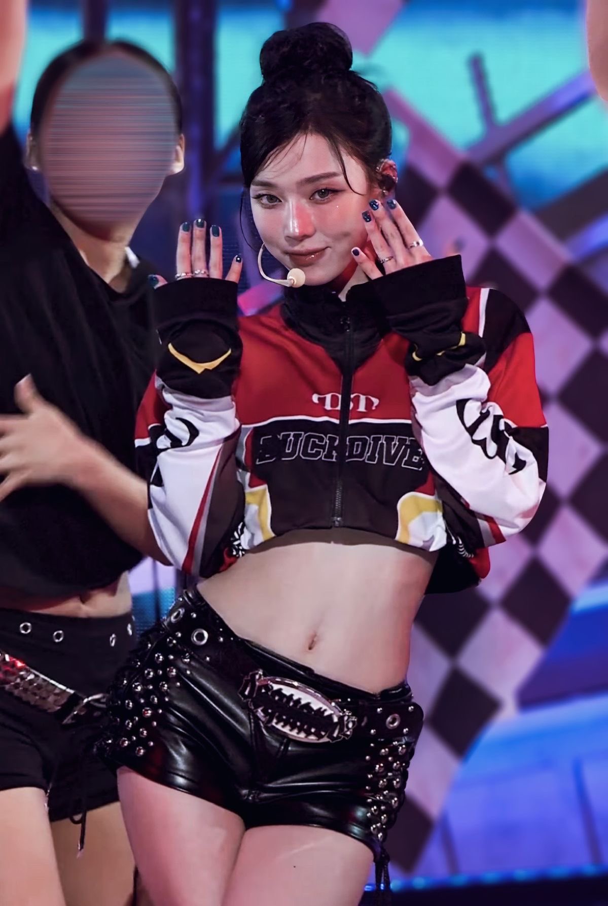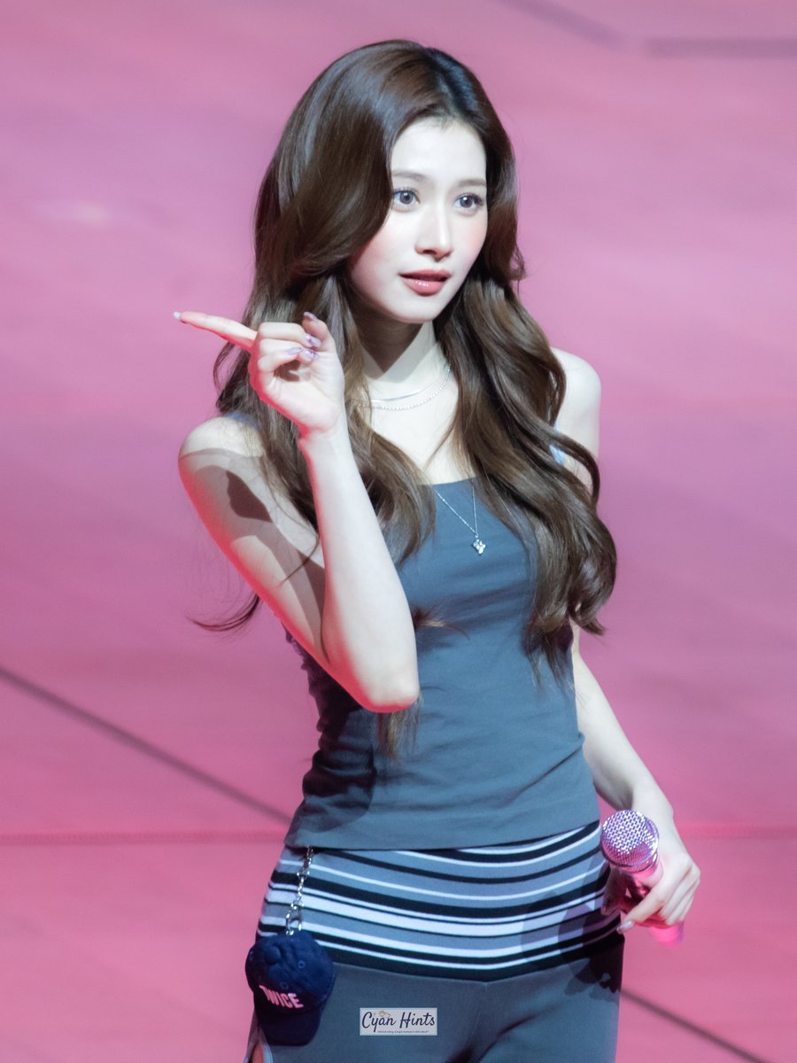 Блииииин какая у нее необычная оригинальная внешка Жаль что она попала с такую группу где её вижуал сдерживают в рамках Представляете если она была в эспе вместо Жизель ..... Она как хищница претворяющаяся жертвой, но взгляд выдает её ..... Очень нравится Странно что итт ее не фажат......