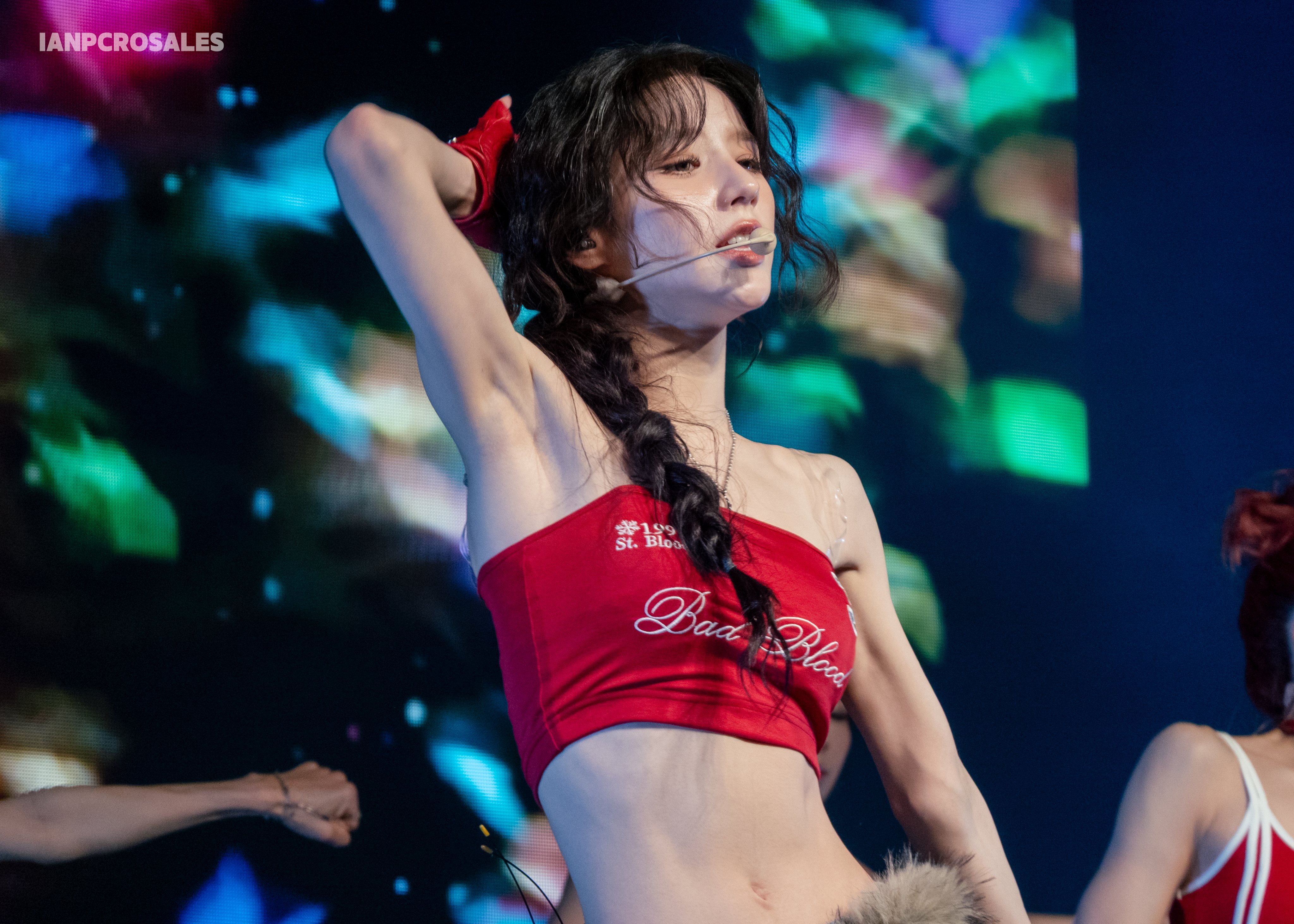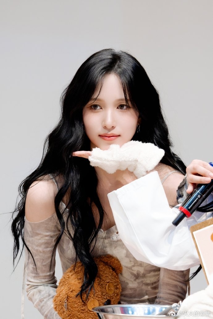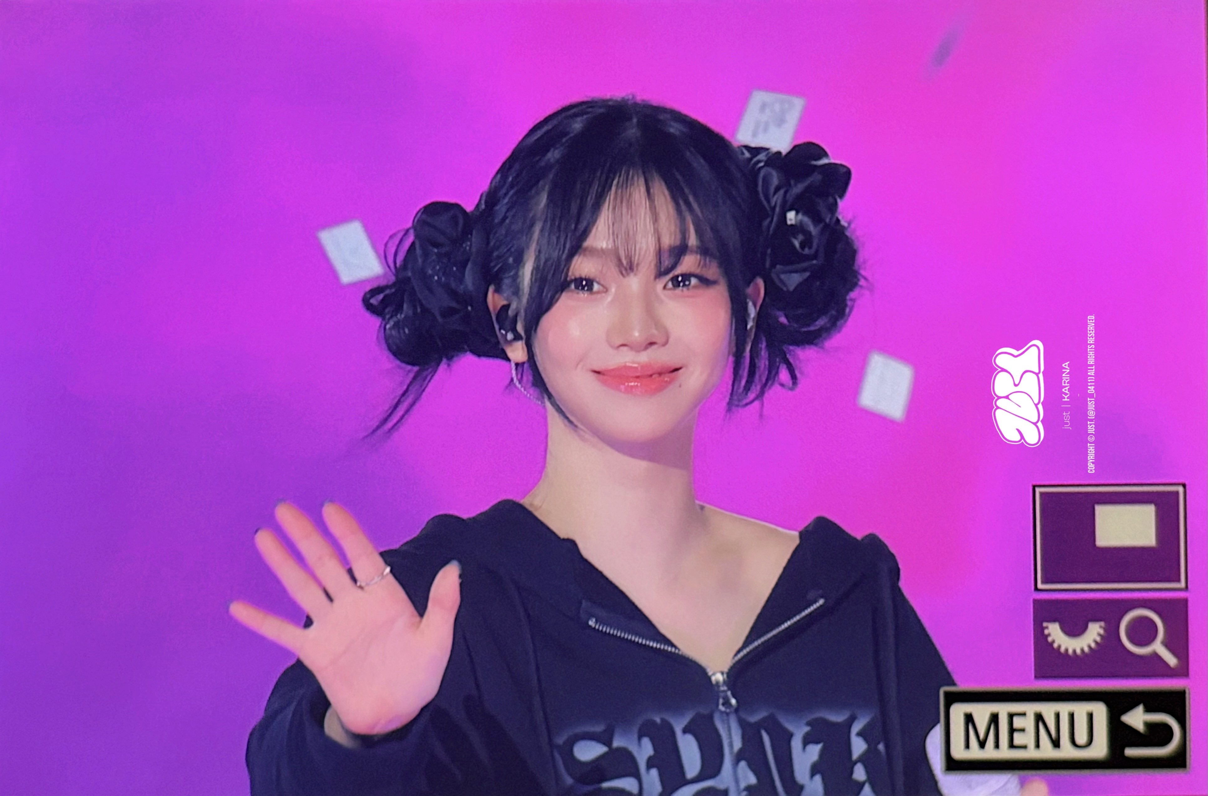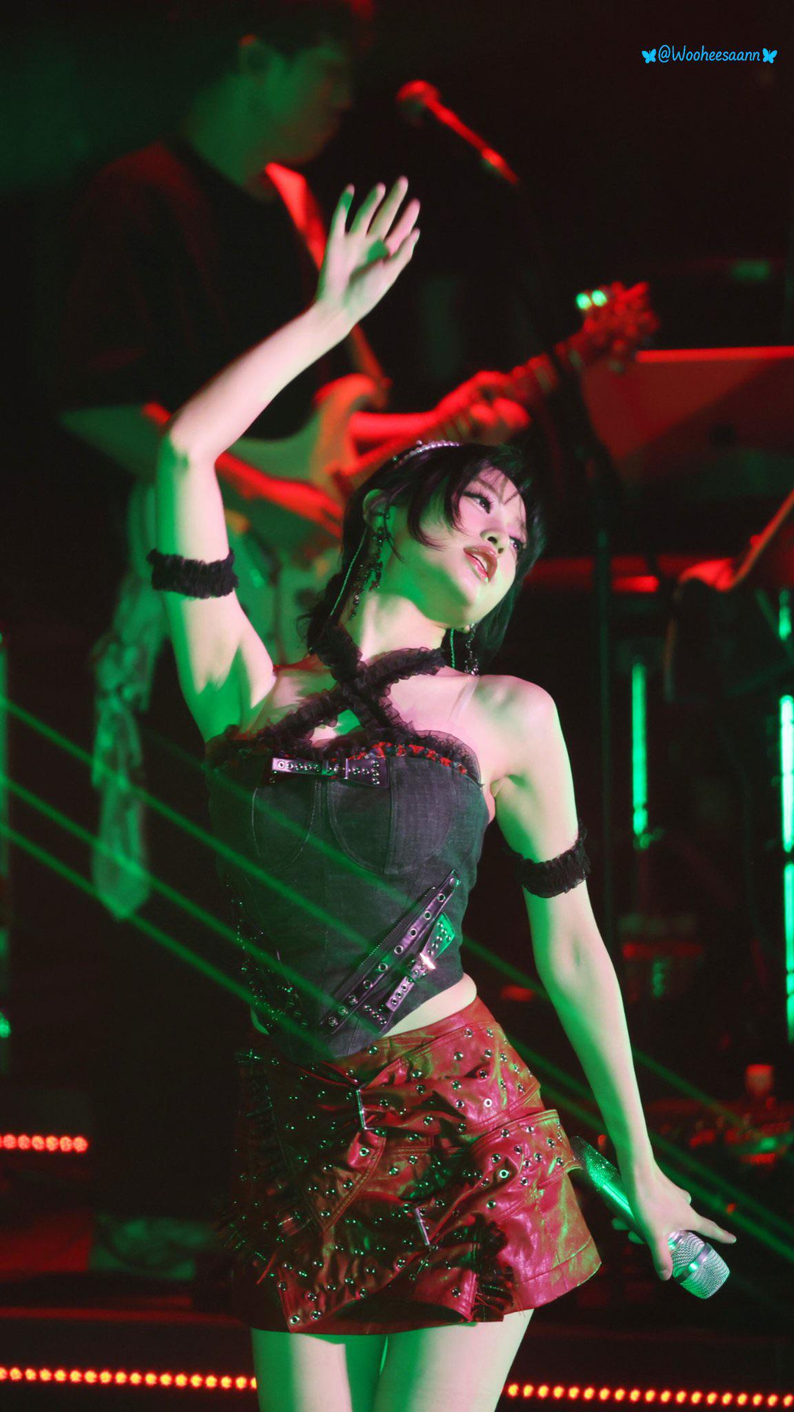 Блииииин какая у нее необычная оригинальная внешка Жаль что она попала с такую группу где её вижуал сдерживают в рамках Представляете если она была в эспе вместо Жизель ..... Она как хищница претворяющаяся жертвой, но взгляд выдает её ..... Очень нравится Странно что итт ее не фажат......