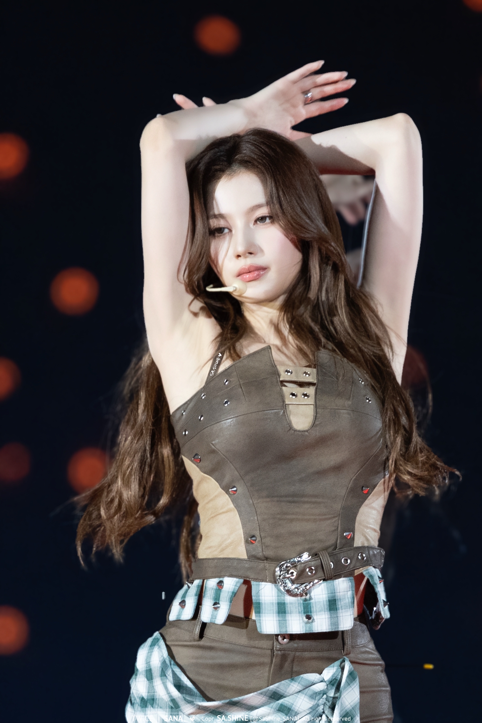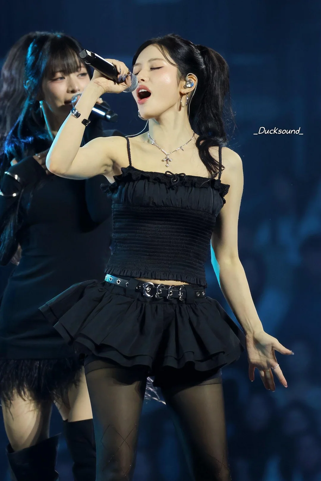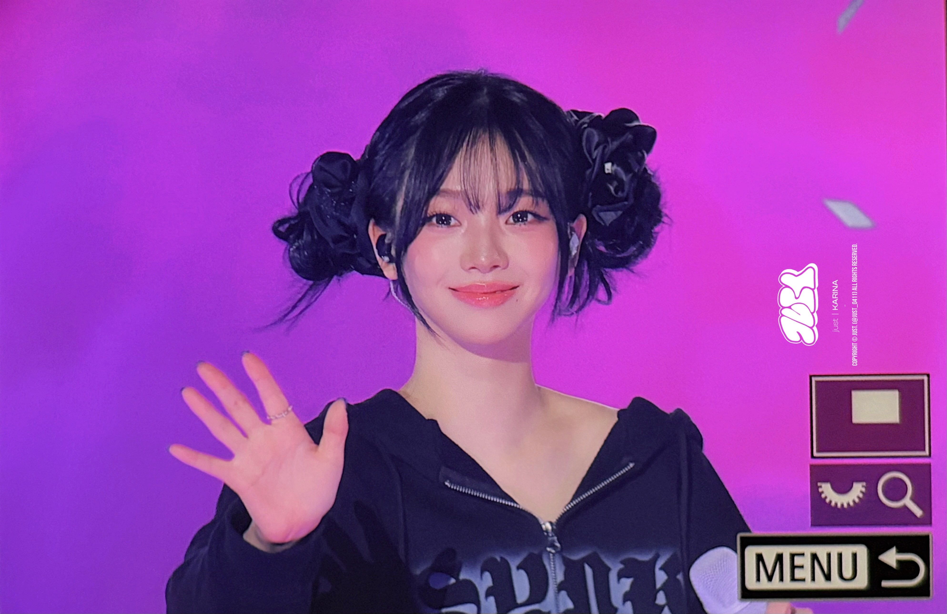 Блииииин какая у нее необычная оригинальная внешка Жаль что она попала с такую группу где её вижуал сдерживают в рамках Представляете если она была в эспе вместо Жизель ..... Она как хищница претворяющаяся жертвой, но взгляд выдает её ..... Очень нравится Странно что итт ее не фажат......