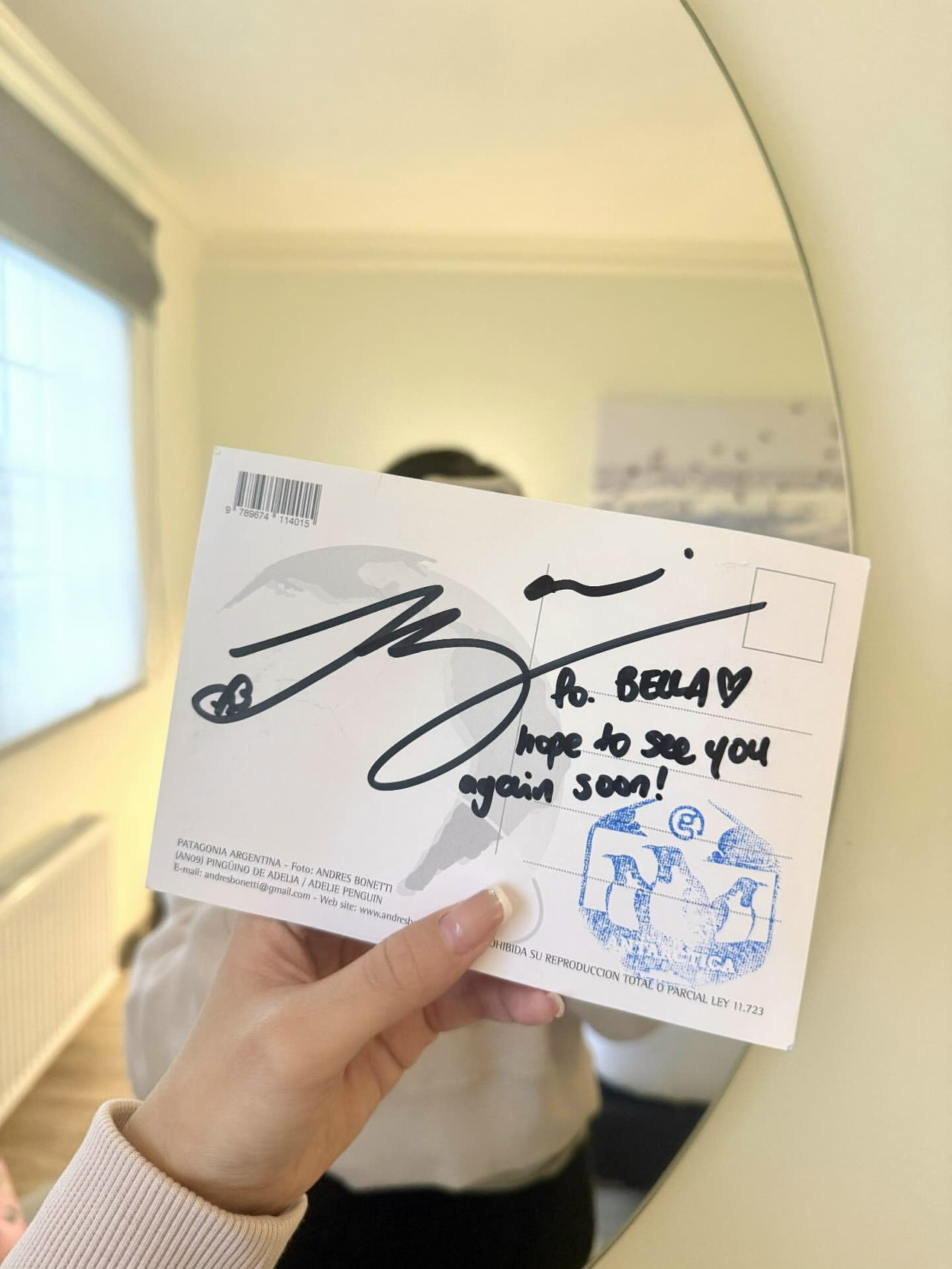 В последний день я написала ей письмо 🥰 с поддержкой, а она в ответ дала мне открытку со своим автографом 🫶🏼.