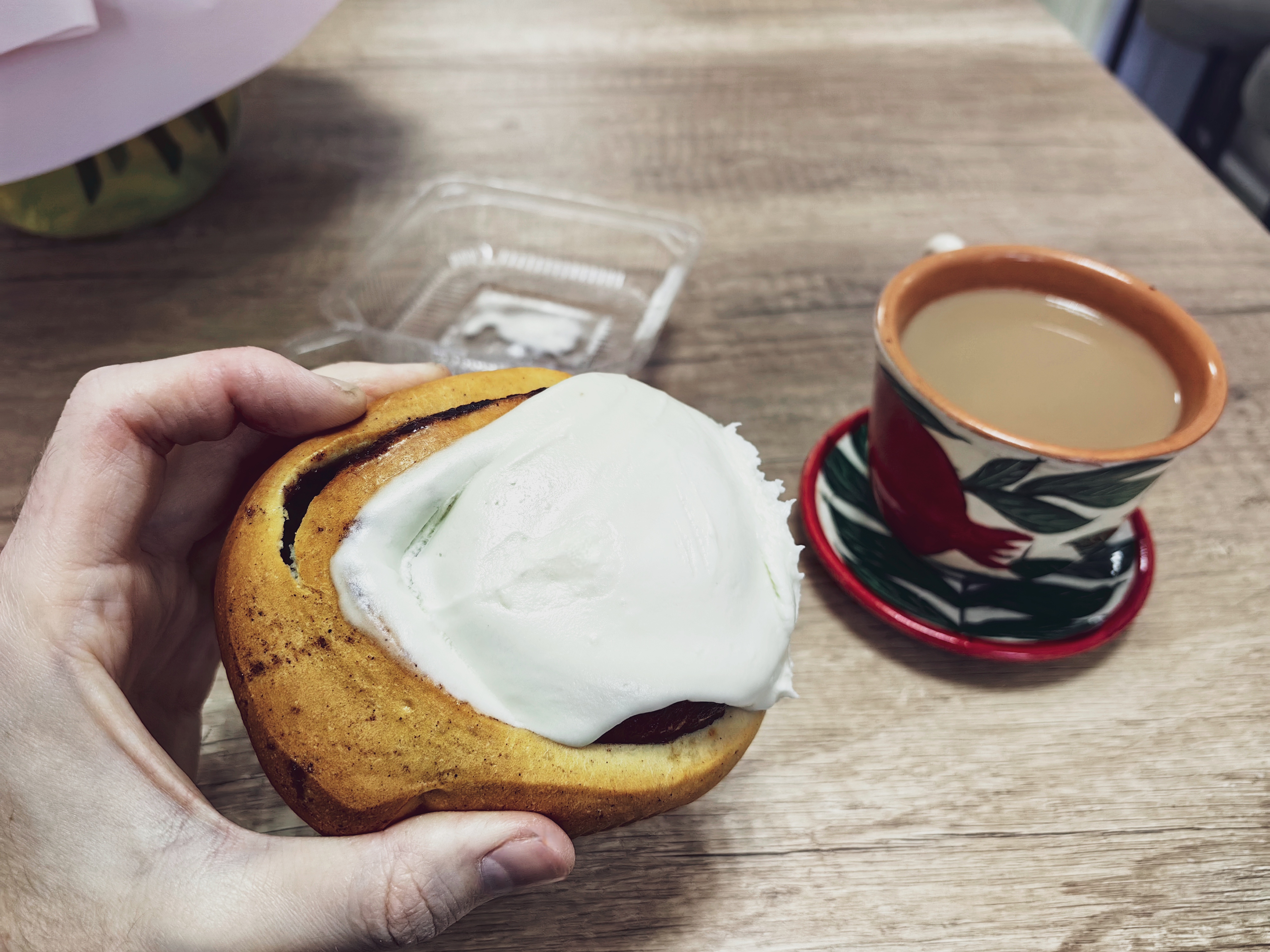Купил булочку в магните, это отвал жопы Такая воздушная мягкая сладенькая, потому что свеженькая, крем приятненький, внутри так мокренько и корица..... Ппц за раз всю съел, хотя думал не осилю и половину оставлю Ваще кайфовая Но покупать больше не буду Всё таки 70р за булку без как таковой начинки это чересчур