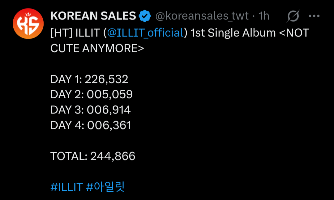 >>1349692 235к было в 1 день, в TOP 100 melon нету, короче если не вписываешь имя Жирхека в кредиты камбека, то с продвижением идёшь нахуй. Политика хайб лейблс