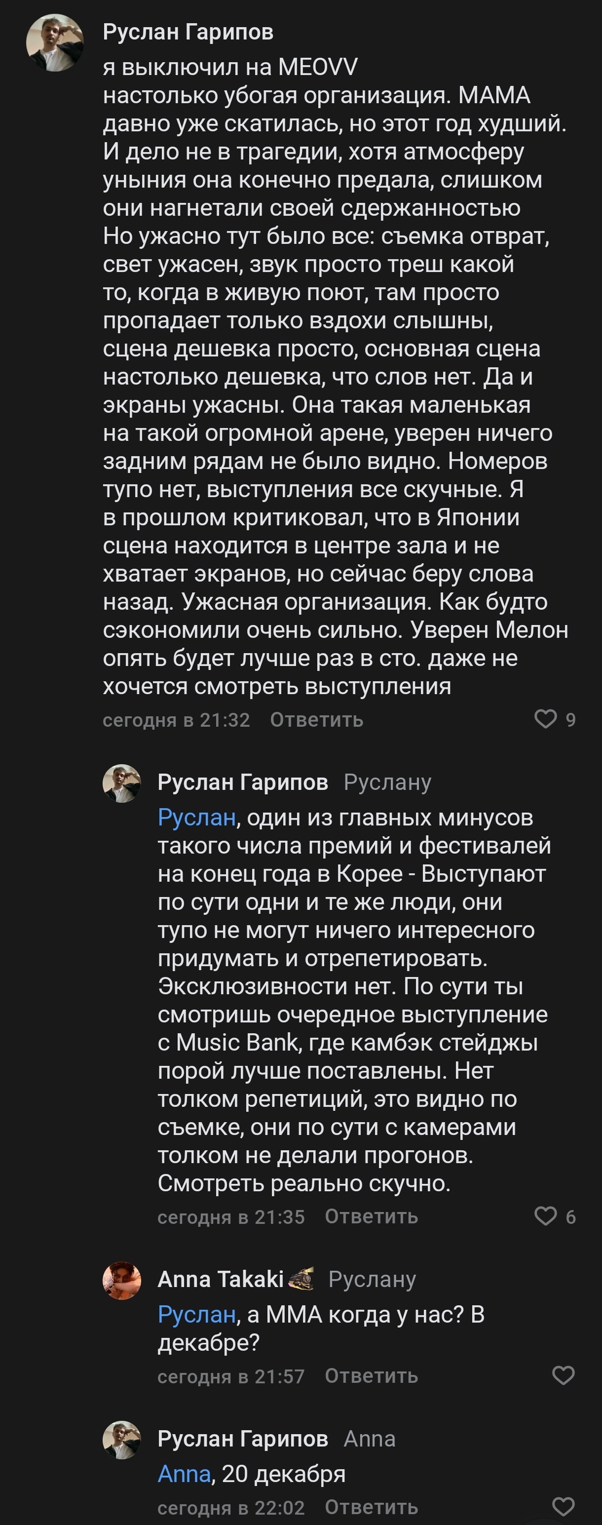 – Мне действительно жаль. Не хотела поднимать эту тему в баббл. Каждый раз когда я прилетаю в Японию и моего менеджера нет рядом, то я чувствую себя неловко, когда кто-то начинает фотографировать меня. Будь я одна в такси или же с моей семьёй, которая просто сидит в машине и ждёт меня – всегда.