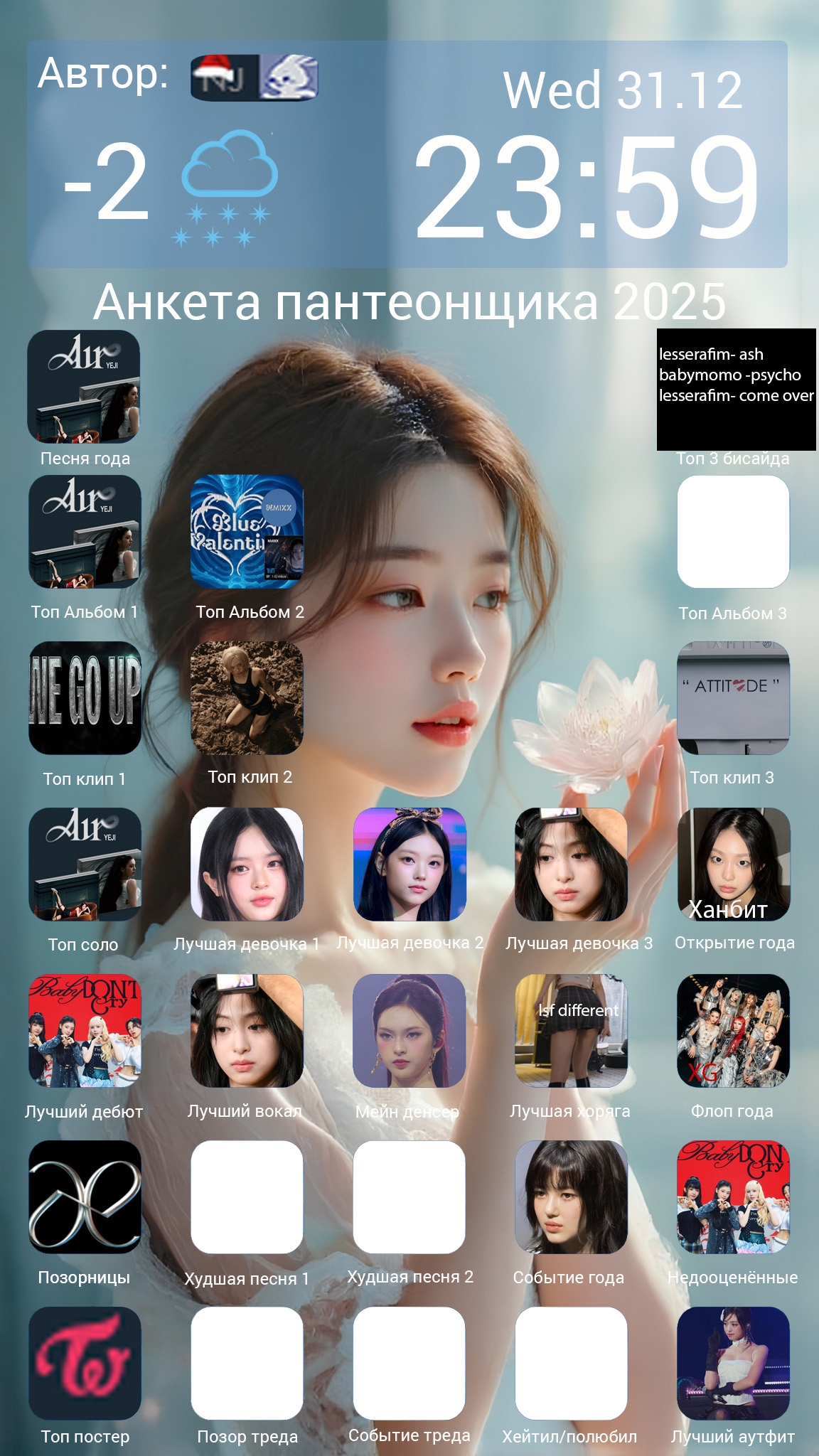 Это великий и единственный тред K-pop богинь в котором мы поклоняемся склоняя голову и любуемся их неземной красотой, встаем на их защиту не жалея собственной плоти. Да озарят они наш жизненный путь своей красотой, да воодушевят они своими голосами трудные наши пути, да даруют нам надежду своею любовь в темные дни, восславим безмерно наших богинь!