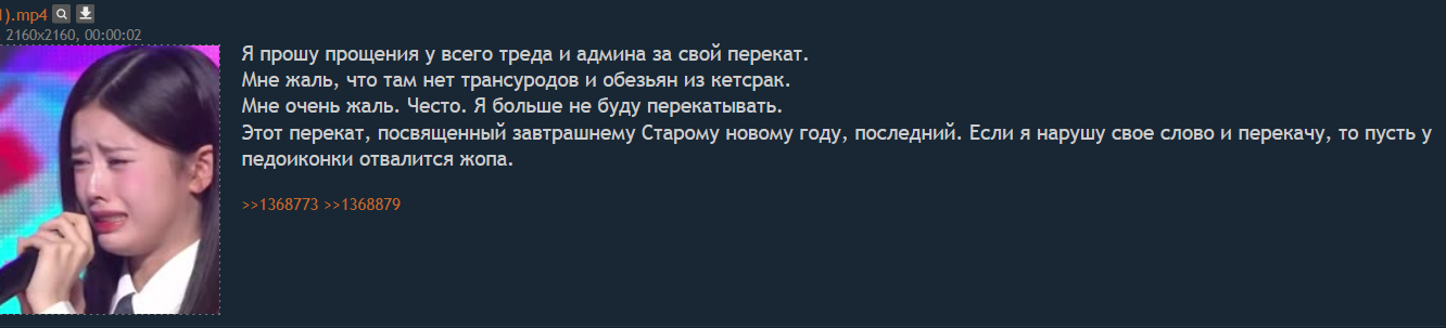 >>1370067 >развлечение нормисов >Я тоже много спамил чем, ещё зимой и весной 2015 Помню в б часто кпоп спамили в вебм тредах, но все равно кпоп так и остался узкой темой не для всех.