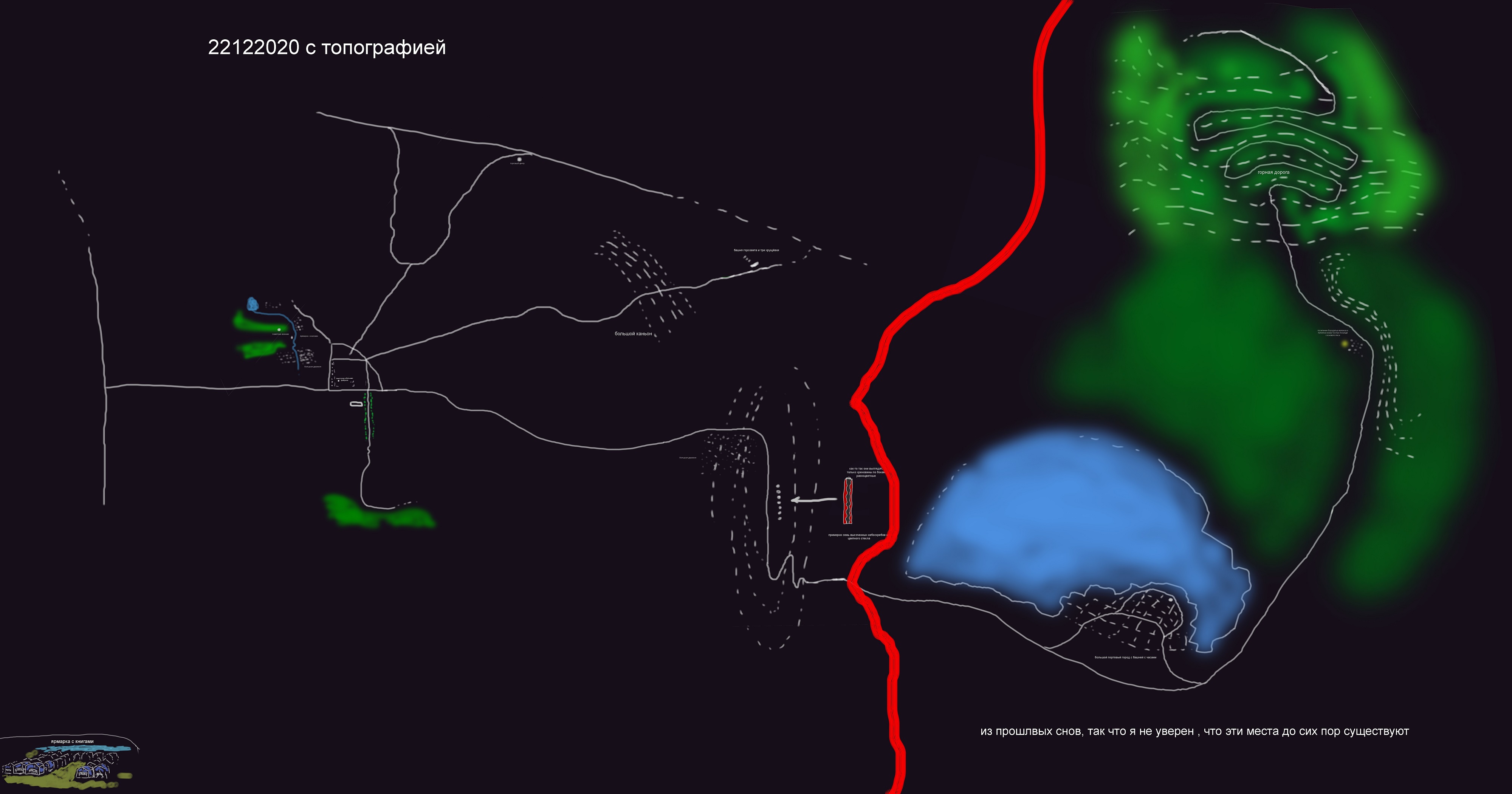 Итак, добрый день и всех с наступающим 2021 годом дорогие мои аноны. Оп, видимо, больше не вернётся сюда, так что отныне это будет мой тред, где я исследую свои сновидения и параллельно пытаюсь выйти в ос. У меня похожая ситуация, в феврале мне стукнет двадцать два, у меня есть брат-сыч, хотя ему 24, он живёт со мной и мамой в одной квартире. Условия у нас более щадящие, никто ни до кого не доёбывается, но если я буду бегать из стороны в сторону и орать, что сплю, то будет плохо. Записывал я свои сны спонтанно ещё с 12 лет, не особо вдаваясь в их подробности, мне было довольно легко это делать, в мае-июне 2018 года я решил месяц записывать свои самые яркие сны и описывать их в текстовом виде, так же, как я делаю это сейчас. Но в итоге записи были полны шизофазией, несостыковок, да и просто были написаны будто первоклассником. Потом где-то летом этого года я нарисовал полномасштабную карту своих снов, но допустил в ней ряд ошибок, например, из снов брал только объекты, когда как общий план был взят реальный, когда с реальными объектами нужно проводить только параллели, иначе получается ни рыба ни мясо какое-то, но в целом примерная карта пикпелейтед всё-таки получилась. Так или иначе, никаких осознанных сновидений я не видел и знать о них не знал. Узнал я о них от друга, с которым прогуливался в конце ноября и рассказывал ему про свои сны, и он ляпнул мне, что если долго так записывать, то можно получить осознанный сон. Я заинтересовался, полез в интернеты, залез на свой любимый оранжевый сайт и в итоге попал сюда. С 3 декабря я буду описывать, в отличии от опа, свой сон каждый день, даже если он очень плохо запомнился и по мере возможности картографировать и снабжать иллюстрациями самое интересное. Я не буду прекращать это дело потому, что тряпка и лень встать с кровати и потратить десять минут на тыкание пальцем в экран телефона, только когда будет ощутимый результат или просто не надоест, так что бульдозер не должен остановиться на ровном месте. Я очень надеюсь. У меня нет конкретной цели, я не хочу ни с какой рей встречаться, у меня прекрасная и очень даже насыщенная жизнь, просто хочется побольше узнать о своих снах, нарисовать нормальную карту снов(а она у меня, кстати, бесшовная, то есть не кидает из одной стороны в другую) и просто побаловаться с чем-то новым. Касательно осов, у меня довольно хорошо запоминаются сны и если после пробуждения пару минут полежать с закрытыми глазами и прокрутить сон, то почти всегда получается его записать, но в них часто просто мало подробностей как таковых. Например, возьмём первый сон от 20 декабря. В нём всё расписано довольно подробно, просто большую часть времени я просто молча шёл по дороге в тумане. Но я думаю, что добротное ведение дневника и осматривание своей руки около пяти раз в день ( у меня теперь даже мозги автоматически напрягаются, когда я делаю «руку») даст свои плоды примерно на второй месяц. Также мне мешает с осами то, что засыпаю я очень долго, почти всегда больше часа, причём неважно, устал я или нет. Я старался писать более-менее грамотно, но, в конце концов, дневник я этот писал, чтобы в первую очередь он был понятен мне, так что сраться, будьте добры, в политач. Я замазал или переименовал всё личное, так как по этому дневнику вполне реально сделать деанон.