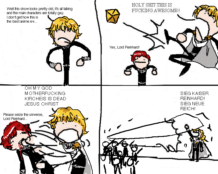>>1131 Райнхард наконец прекращает скрывать свою ориентацию и женится на Зигфриде , с помощью клонирования заделыват наследника , создав первую в истории Рейха гей - династию . Хильдегарда от безысходности становится любовницей АннеРозе