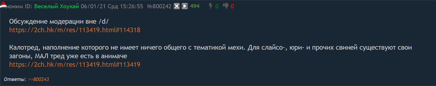 Давайте начнем с чего вообще всё началось. Кто-то пёрнул что ему дали модерку и он будет всех сейчас вскрывать. Лично я считаю что это переход красной линии, тут все сидят ради анонимности и анонимность - священая корова. Если бы всем было плевать на анонимность то конфа взлетела бы. Так что стук в Д на лжемодера был искренний. Не вините анонимусов. Ещё я считаю дном вайп свиньями, жидопораша, просто флуд чем-то вроде фейт кал в восемьсот повторений. В остальном всё приемлимо. Вы согласны?