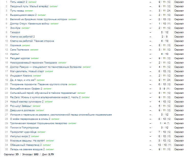 Сколько онгоингов будете смотреть в весеннем сезоне? Я 14 насчитал, но какие-то надо будет в онхолд закинуть, потому как пять романтик за раз я не смогу смотреть.