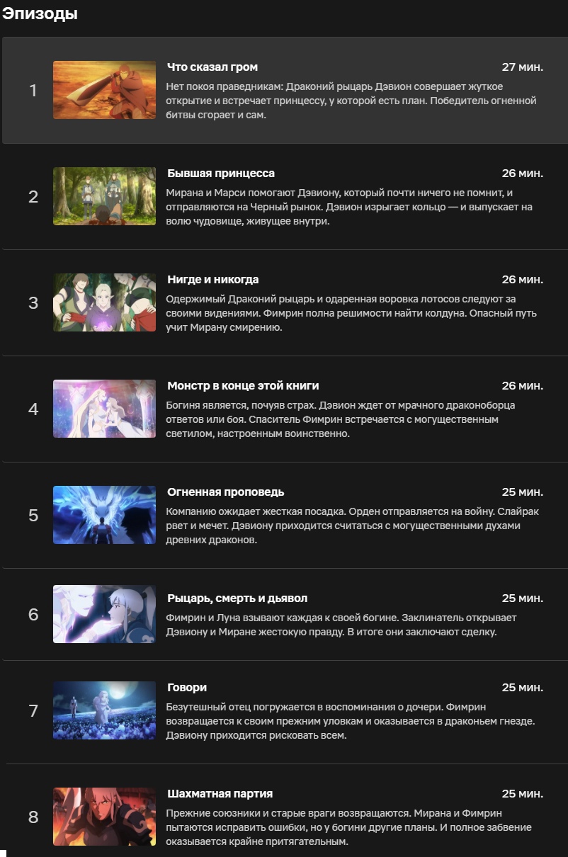 Неплохо для западного аниме. Ожидал обсёр по всем фонтам, а получил крепкий середнячок. 3д кошканы и драконы и сука террор... конечно немного заёбывали, ну да и похуй на них. Персонажи то получились неплохими. Сюжет тоже нескучный. Не думал, что карта для третьего варика сможет когда-нибудь обрасти таким ЛОРом лол. В последних сериях даже смогли порадовать неплохим экшоном. Буду ждать проду и надеяться, что мультос по Ведьмаку будет не хуже. 6/10