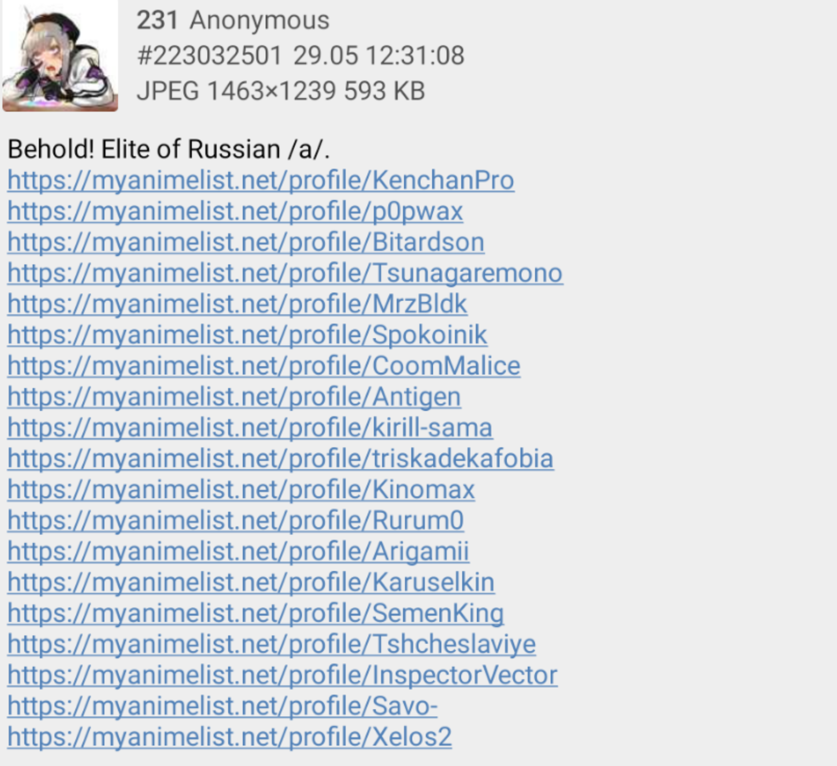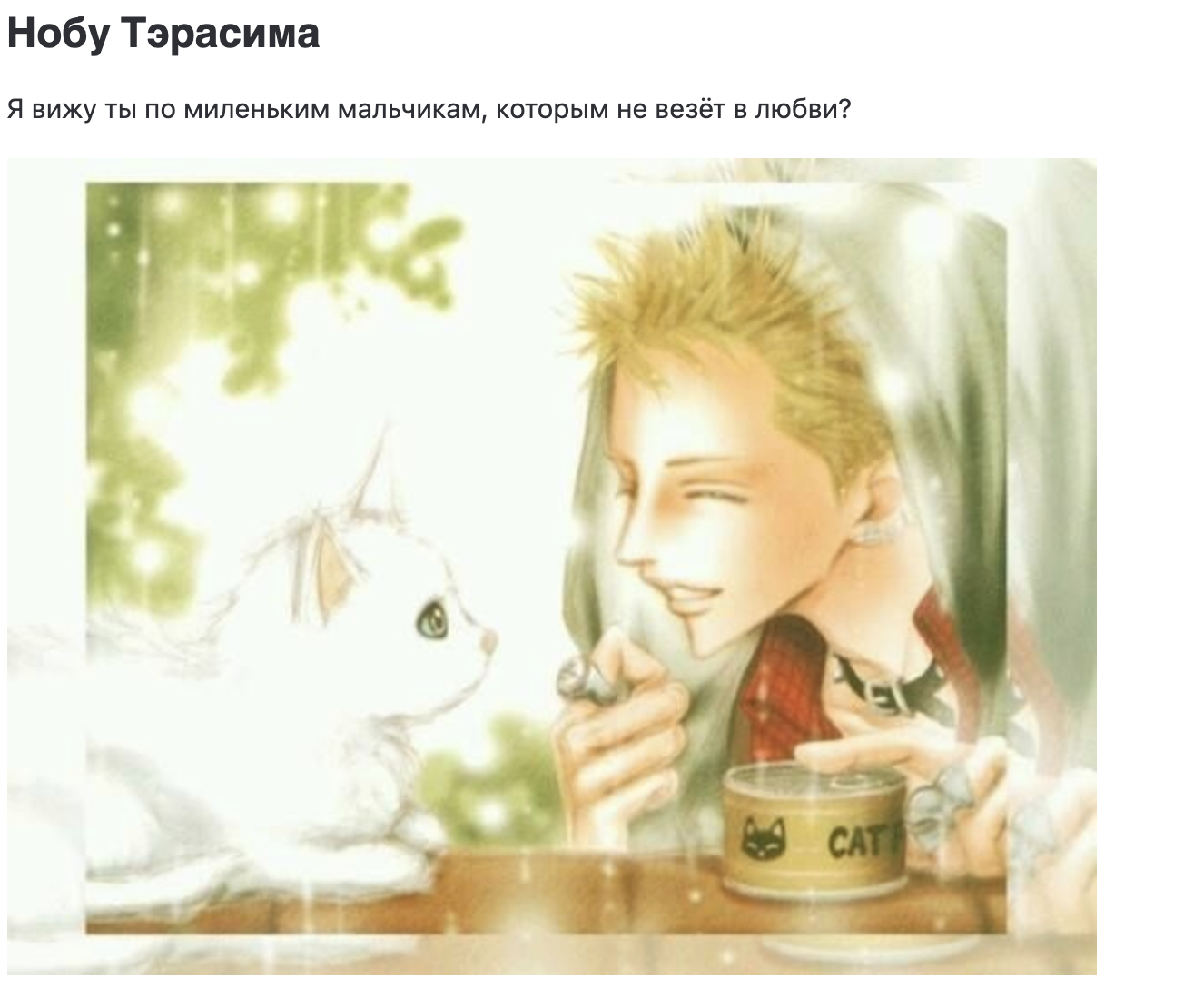 Зашёл сейчас на шики поглядеть скрины аниме я так часто делаю, глянул страницу персонажа и там ЭТО. Просто вдумайтесь: чел смотрит аниме, ему всё нравится, ему интересно. И тут он решает зайти в профиль перса, (сейю чекнуть, к примеру) а там такое, блять! И ладно бы это аниме - тут сразу понятно, что ГГ будет с этой девушкой, но ведь есть и другие тайтлы, где не совсем всё понятно. Как хорошо, что я оттуда съебал.