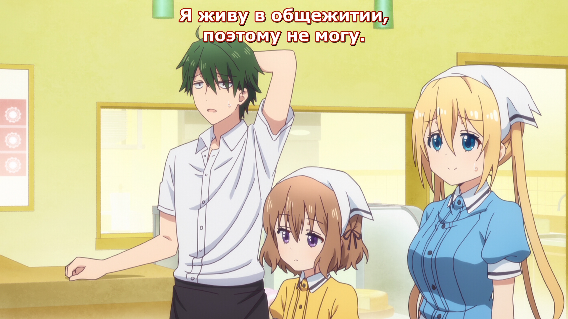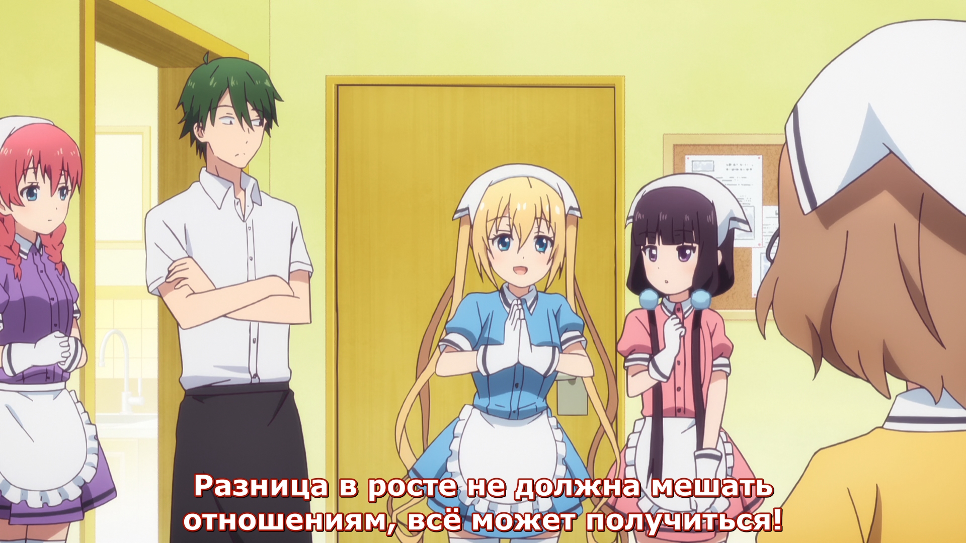 Обычный такой угунюю-гамбаримас тайтл. Ничего нового, ничего интересного, ничего стоящего. Всё это я уже тысячи раз видел. Если бы не опенинг и его форс, то наверняка вообще бы не обратил на это аниме внимания. Уж лучше бы по второму разу Воркинг посмотрел, там хоть лавстори плотнее, чем здешние нелепые попытки в романтоту, которая нахуй не всралась. Вот эти вот смайлы свистики садистики, должны были быть по-настоящему смешной фишкой тайтла, а в итоге ей всего 2-3 раза за весь хронометраж воспользовались - в начале и пару раз в середине. Нахуй тогда вообще вводить эти их кафешные роли? Энивей, негатива какого-то не почувствовал, кроме той сцены про рост. 5/10