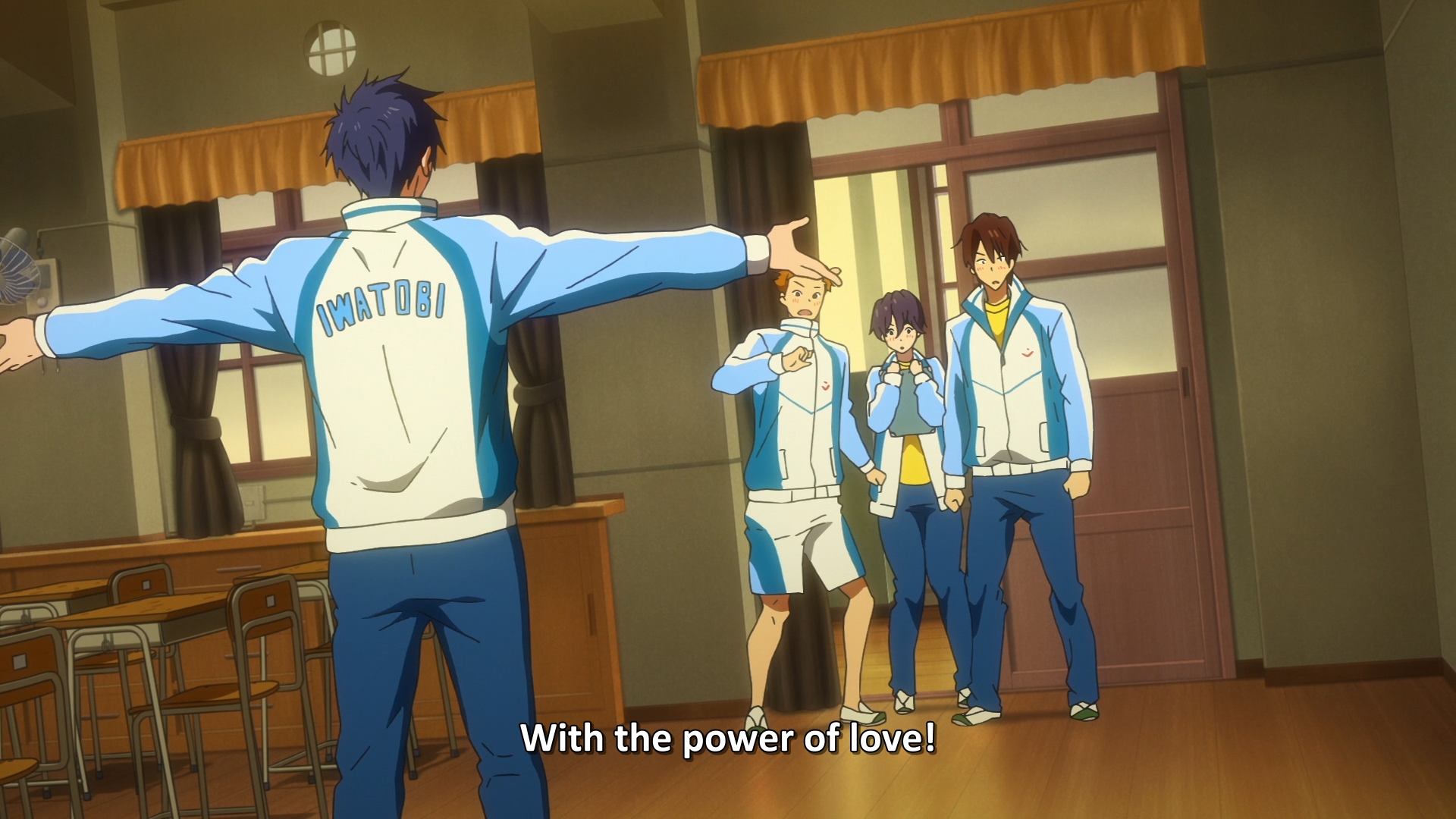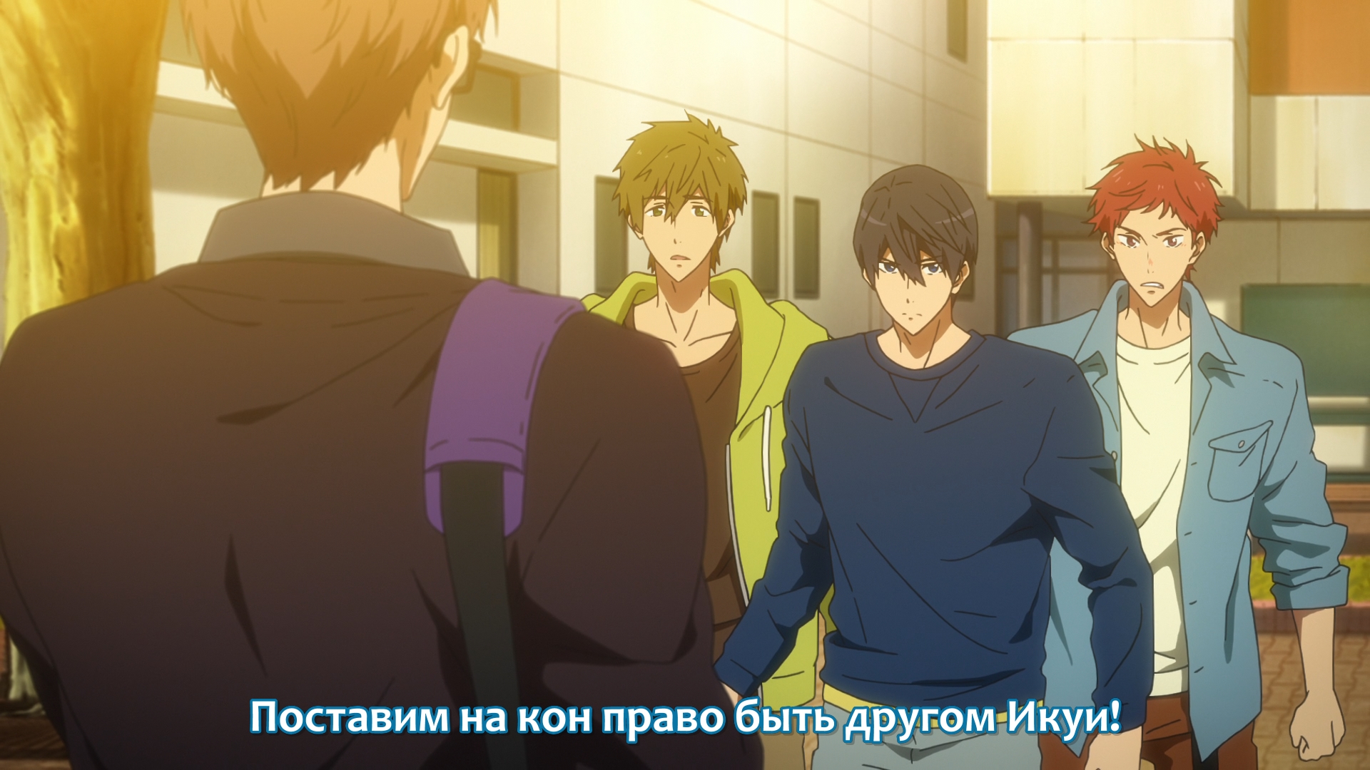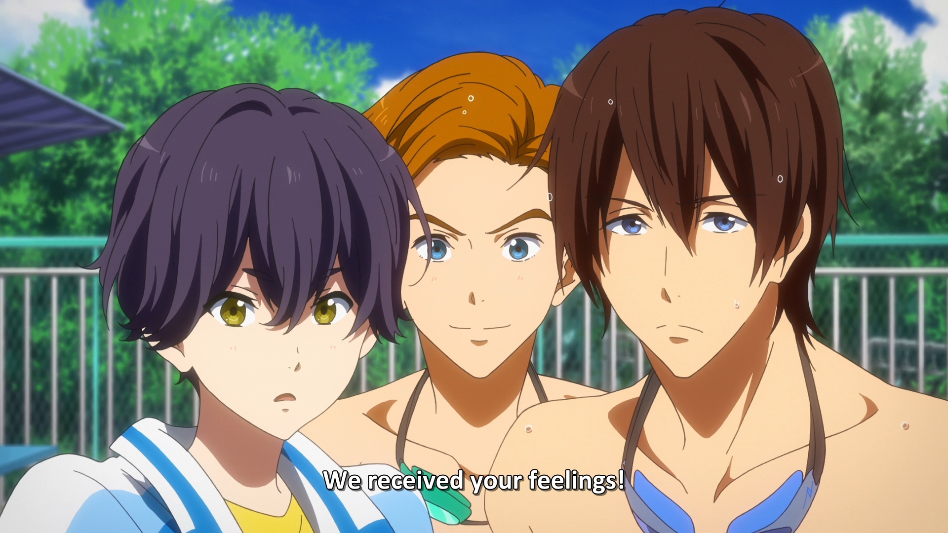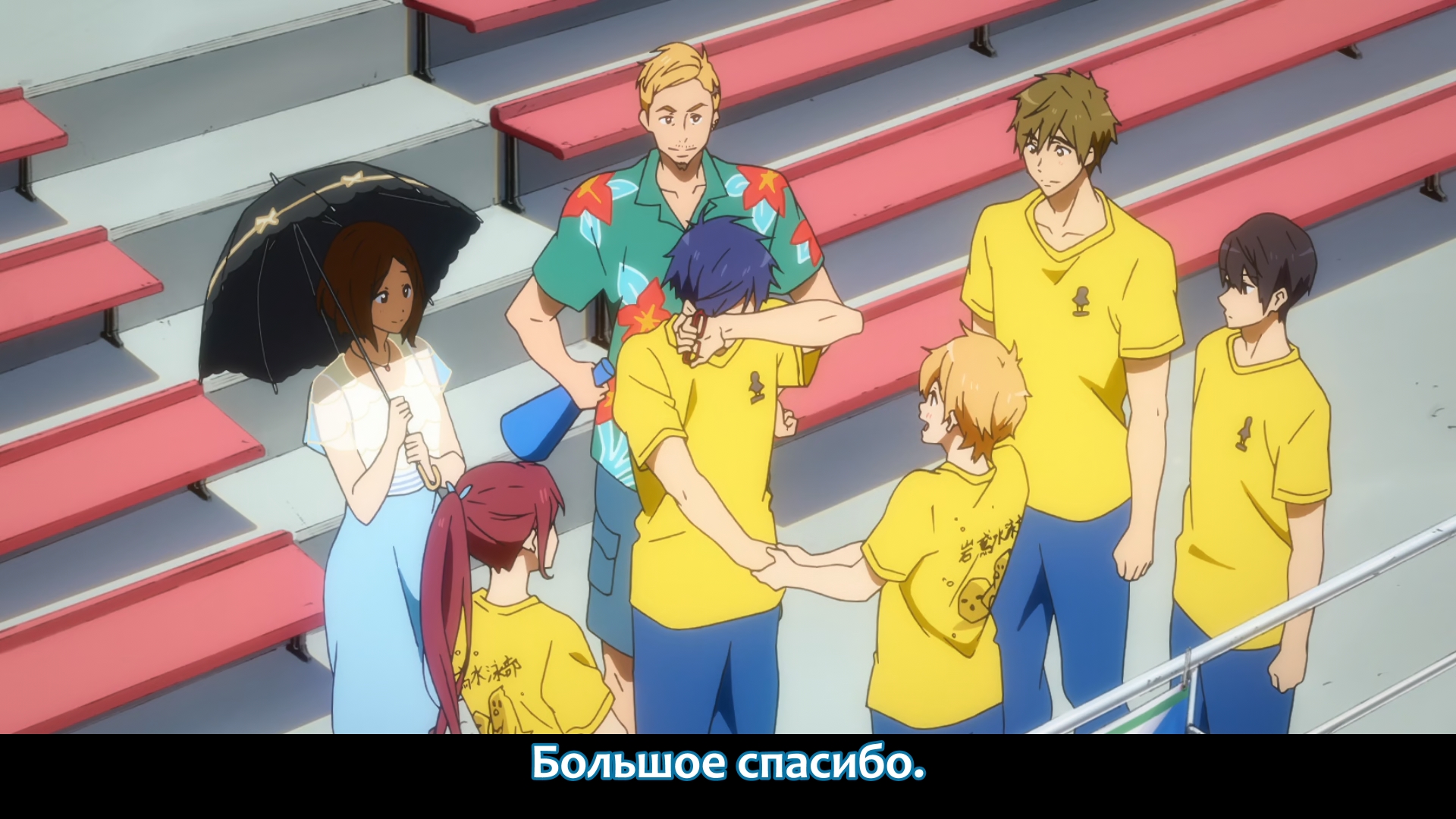 Фри - клишированный конвеерный проходняк. У пацанов даже какого-то особого характера или архетипа нет - всё шаблонное. Построение сюжета дефолтное аля: детишки раньше были тимой, подросли; один из них съебался куда-то там, перед этим не забыв навести драму(офк высосанную из пальца) с другим челом, потом вернулся и теперь будет соревноваться против своих старых друзей, но уже в другой команде. Затем эти два чела мирятся и улаживают старые распри, дружбамагия. Всё это уже видел под другими обложками. Второй сезон уже разнообразнее, но тоже ничего интересного. Разве что предпоследняя серия в Сиднее была неплоха. Жирухо-фансервис не особо мешал. Даже местами было забавно, когда слишком сильно и пафосно акцентировали внимание на мускулах, прессе и тд. В голос проигрывал. Но это было только в первой половине первого сезона, потом уже от этого отказались, и правильно сделали.