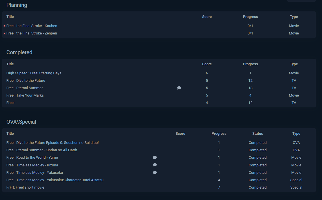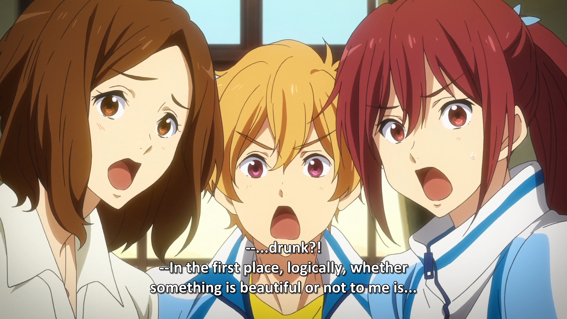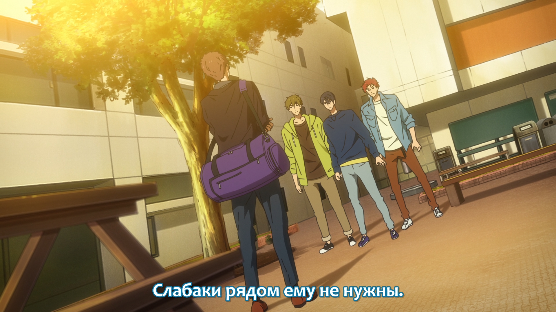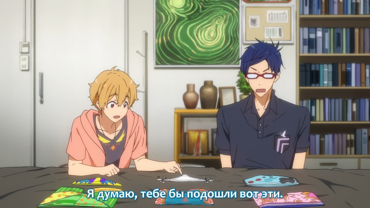 Фри - клишированный конвеерный проходняк. У пацанов даже какого-то особого характера или архетипа нет - всё шаблонное. Построение сюжета дефолтное аля: детишки раньше были тимой, подросли; один из них съебался куда-то там, перед этим не забыв навести драму(офк высосанную из пальца) с другим челом, потом вернулся и теперь будет соревноваться против своих старых друзей, но уже в другой команде. Затем эти два чела мирятся и улаживают старые распри, дружбамагия. Всё это уже видел под другими обложками. Второй сезон уже разнообразнее, но тоже ничего интересного. Разве что предпоследняя серия в Сиднее была неплоха. Жирухо-фансервис не особо мешал. Даже местами было забавно, когда слишком сильно и пафосно акцентировали внимание на мускулах, прессе и тд. В голос проигрывал. Но это было только в первой половине первого сезона, потом уже от этого отказались, и правильно сделали.