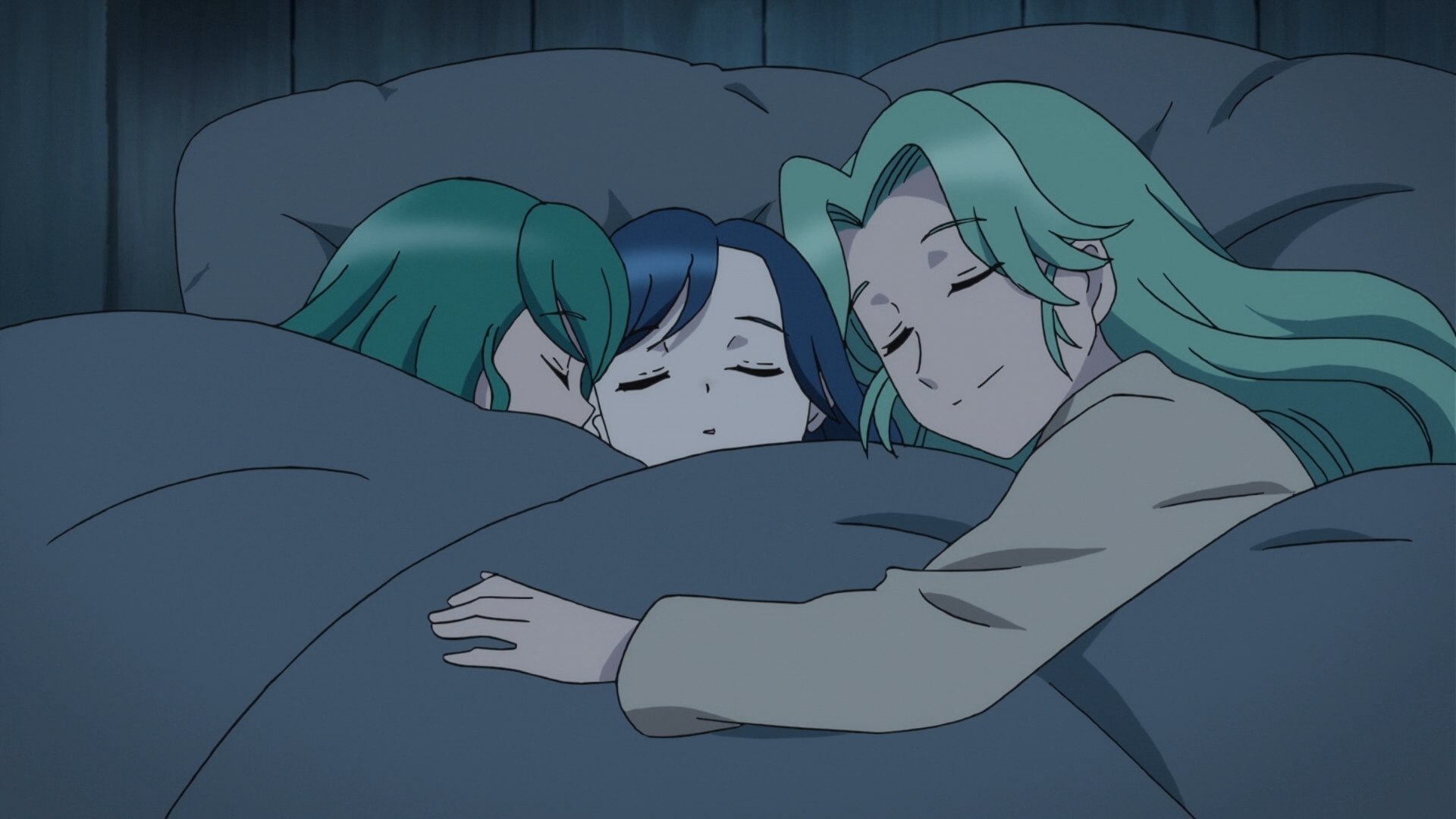 Воооу. Вот это круто чеховское ружьё выстрелило (вроде так это называется). Был показан момент, где Рикка грустит, а потом и вовсе ссорится с сестрой, но почему - не понятно (по крайней мере мне, ибо я забыл), и я не вдуплял к чему этот флешбек был показан, а потом через пол часа, словно выстрел, приходит понимание. Ахуенно сделали. Аж дух захватило.