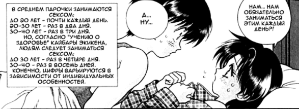 > А сегодня я вообще прочёл мангу для молодых пар, где объясняется весь принцип секса, как доставить удовольствие партнёру и т.п. Кто-то знает, что это за манга?
