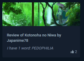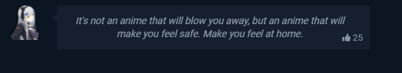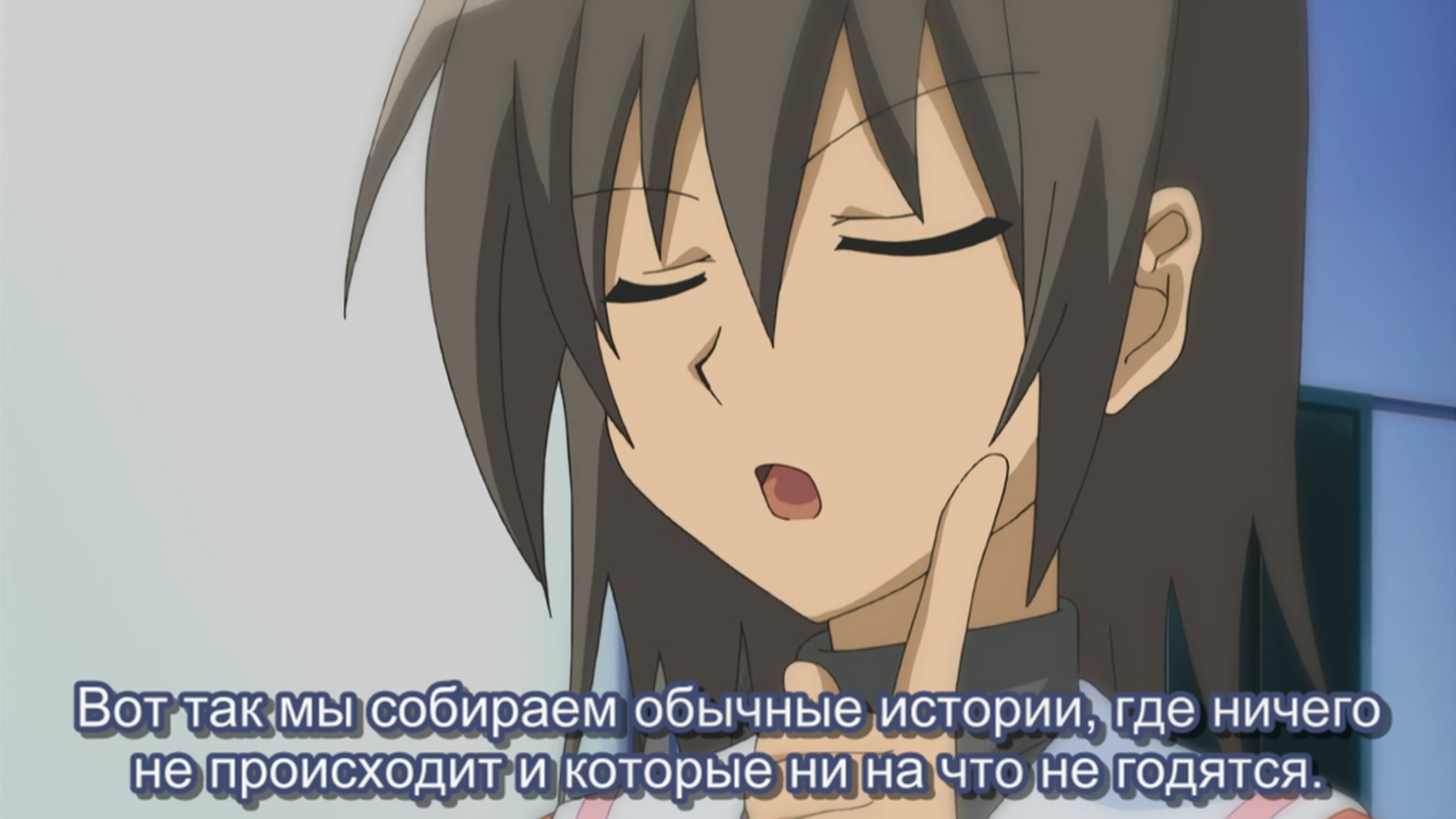 >>134745 Ну их как бы нет. Есть две сестры, с которыми запомнилась только сцена как они из дома убегали. Есть 11-летняя горожанка большой грудью, одержимая одной из сестер. Есть Рэнге, которая самый интересный персонаж, но со слишком большой разницей в возрасте с остальными и которая как бы сама по себе. Ну и все. Моментов в которых героини просто хорошо проводят время друг с другом, проявляют заботу и прочее - крайне мало. Вместо этого избитые шутки, которые зачастую были бы уместнее в чем то более дегенеративном, типа ochikobore fruit tart. Ну т.е. для меня эталоны девочкослайсов это хидамари и к-он.