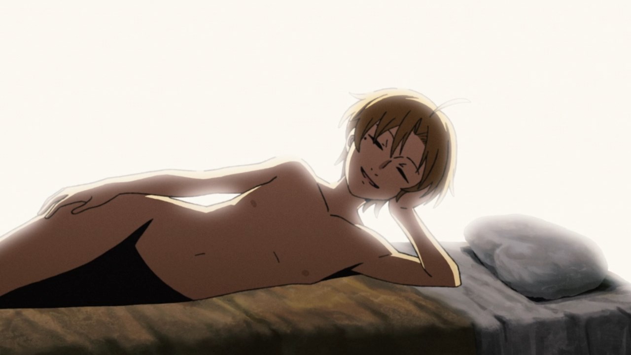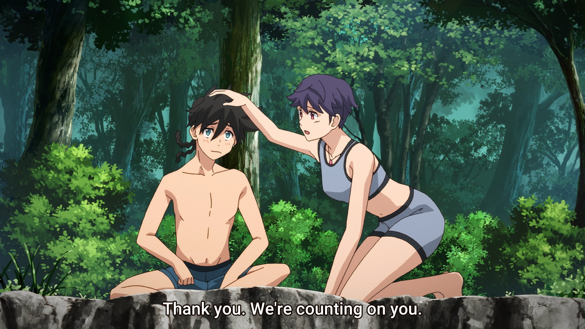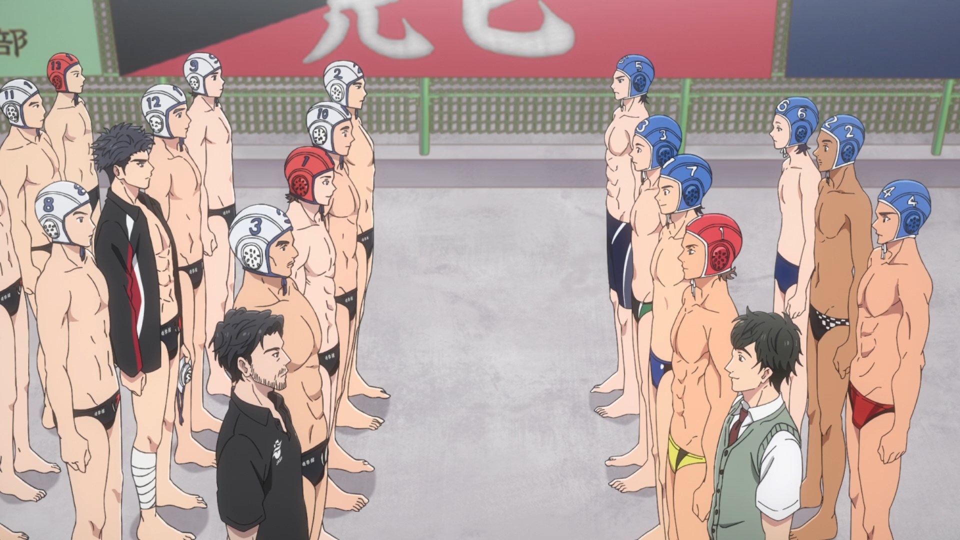 Интересный спокон получился. Вот прям необычный. Может вид спорта повлиял, а может некоторые сюжетные ходы, но получилось здорово. Необычность вида спорта повлияло на течение матча. У них не было особо времени подумать и поразмышлять по пол серии, как во всяких куробаскетах или волейболах. Нужно плавать епт, быковать на всех и кидать мяч. Некоторые даже выдыхаться успевали за время матча. Реализм же. Ну а необычностью сюжета я бы назвал двойную амнезию у ГГ. Даже грустно стало за него. Год ебашил с зелёными чуваками, дружил с ними, а потом хуяк и нихуя не помнишь. Обычная амнезия вначале то ладно хуй с ней, но двойная это прикольно. Бесили эти дурацкие шапочки ещё. Максимально уродуют персонажей, но с ними приходилось мириться. Ну и за Черепасика отдельный плюс. Чёт заметил, что маппа иногда всяких смешных питомцев добавляет в свои тайтлы. Неплохая ттенденция на самом деле. 7/10