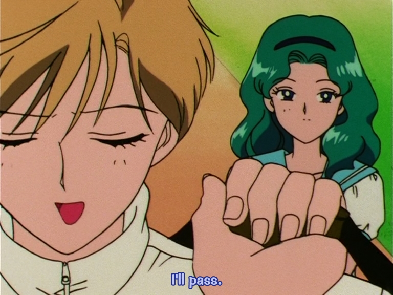 Буквально пару секунд назад мимо Усаги прошёл её будущий муж, а она уже привлекает к себе внимание каких-то рандомов и расстраивается, что они не клюнули и ушли к другим. ?????