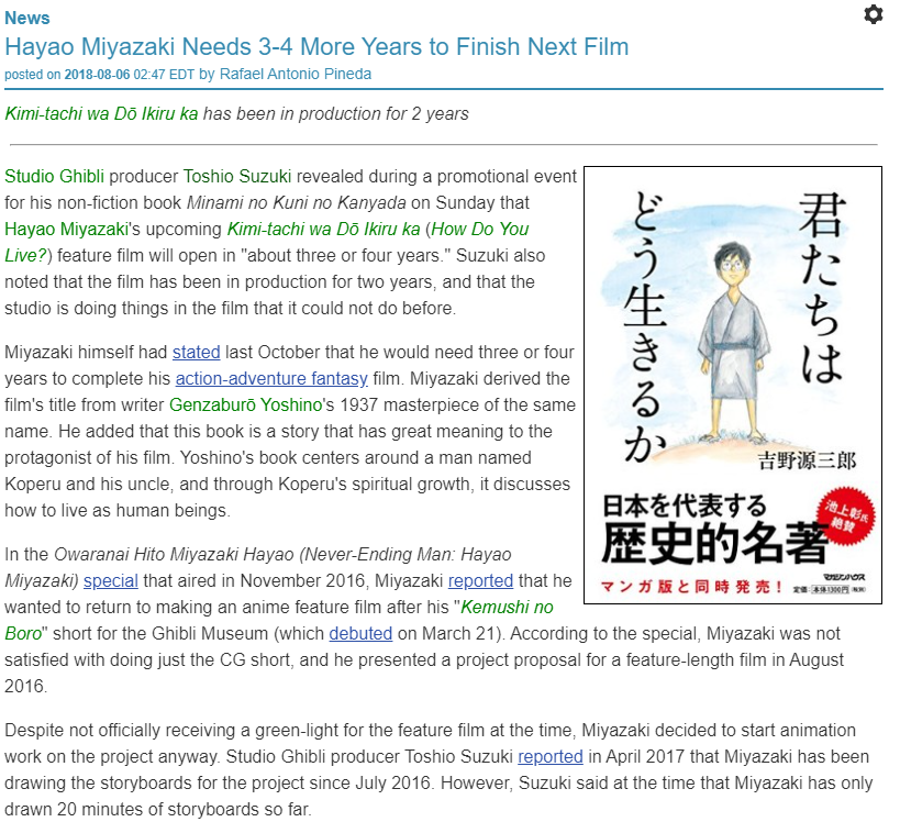 >>140680 Ну в смысле я еще год назад читал интервью с гиблевским продюсером, где тот рассказывал что дед что-то совсем теперь медленно работает и еще порядком будет копаться, но что сториборды он все уже закончил. Что-то такое