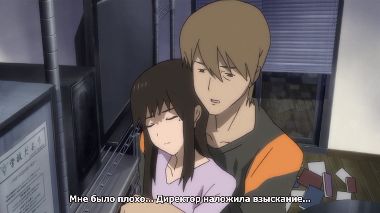 В смысле чел установил камеры в сортирах, раздевалках школы и в собственной спальне, транслируя все в инет - в том числе то, как свою ученицу ебал, а его всего-лишь отругали и отстранили от кураторства клуба. А он еще и обиделся на это. И продолжил ебать ученицу. Пиздец. Или типа они не уверены, что это именно он? Ну да - лицо то замазано, а со сложению и интерьеру не догадаться никак. А еще я не понимаю почему это у меня в птв было и зачем я это смотрю. Неужели и правда из за этих стульев? Хоть убей не помню. Но теперь немного любопытно, что там дальше будет - сперва думал, что опять лайт-версия "повелителя мух", типа Ривайяс, только хуже, а сейчас уже и не знаю, хотя скорее всего это в том числе. Но смотреть иногда тяжко - тайтл весьма уродливый, порой прямо ждешь что лица начнут оползать и смешиваться в бесформенную массу, как в "райских дыньках" из широбако.