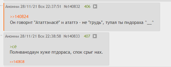 >>140818 А в ансабе она идёт намёком, окей. Просто закрой ебало и принимай поздравления - нет, блять, надо что-то спиздануть. Ю ТАЧИНГ МИ! Да, блять, она трогает тебя, прижимает к своей груди, а как ещё показать свою любовь и близость? Фу, нахуй.