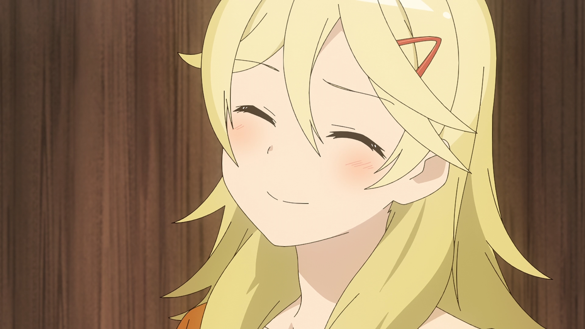 Сперва подумал, что я уже это смотрел и овашка затесалась в релизе второго сезона, но нет - ее начало просто дополняет один из эпизодов с одинокой прогулкой Коконы. Только выглядит явно получше(не то, чтобы твшка выглядела плохо, впрочем) - много интересных кадров с эффектом fisheye, словно показывающих нам мир сквозь ее удивленные и широко распахнутые глаза.