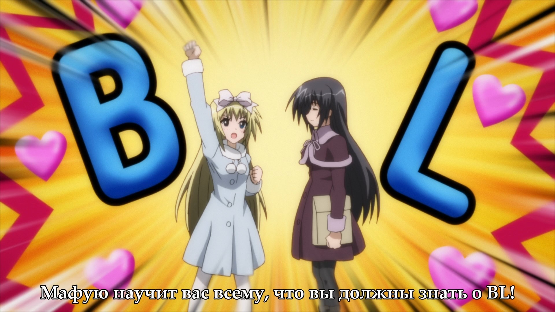 В общем как я уже говорил, визуально тайтл напоминает этакую химеру, словно слепленную из всех шафтотафтлов 2004-2009. Потому что между ними хоть и было множество пересечений, но все же есть вещи, которые характерны только для ppd! и негимы, только для хидамарей, только для эф и т.п., а тут натурально сразу все. У меня с этим нет проблем и я уж точно не стану обвинять в копировании человека, внесшего значительный вклад в формирование этого стиля, но похожесть сразу на все в какой-то мере лишает тайтл своего собственного лица. Структурно и тематически тут лучше всего подходит стиль негимы и ppd! - собственно именно он тут в основном и используется. Главная проблема для меня это сценарий и персонажи. Вот тут все как на подбор, словно специально чтобы дать побольше поводов мне глаза позакатывать. Ебанутая младшая сестра, домогающаяся до старшей; старшая сестра, домогающаяся до брата, рисуем-девочку-называем-мальчиком, нкакой гг в которого почему-то влюблены две тянки, гомо-шутки, шутки с недопониманием, шутки про размер сисек, милая девочка готовит отраву, но все стесняются ей сказать... ну и все в таком духе. Все это кое-как вытягивает визуальная подача и то не всегда. Хотя некоторые из эпизодов ближе к концу вполне ничего. В общем 6/10, с некоторой натяжкой