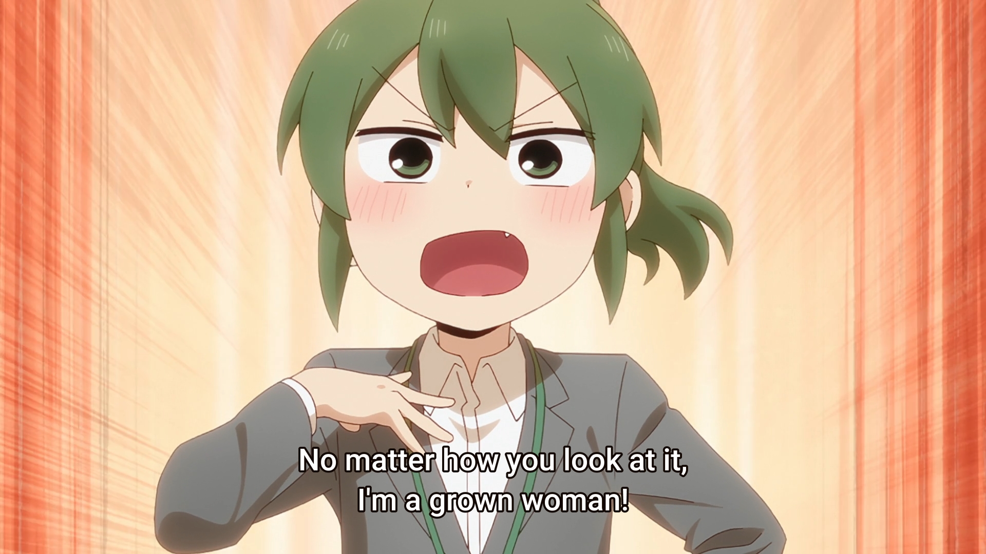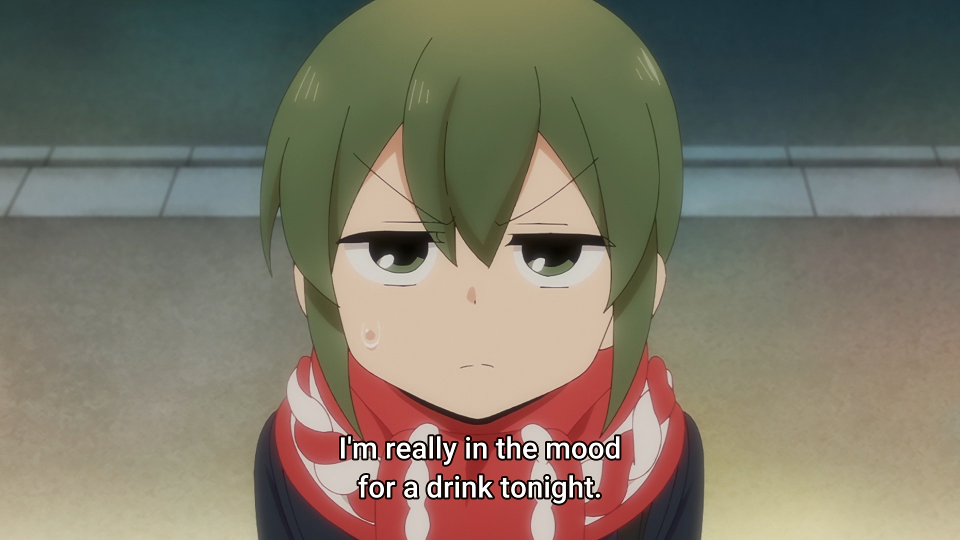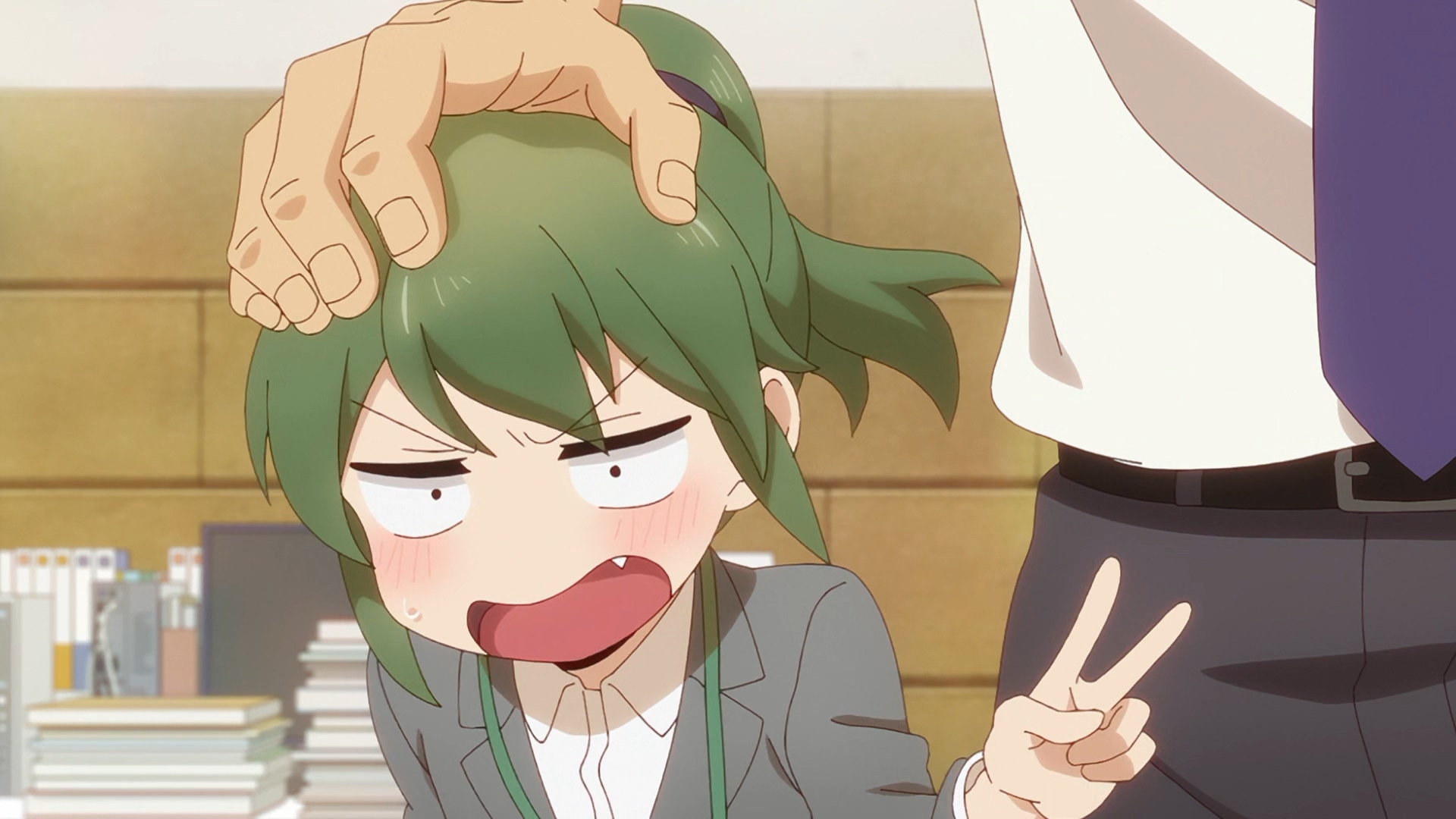 Я немного удивился и был заинтригован, когда уже в первом эпизоде главная героиня не просто вполне осознавала свои чувства к семпаю, а даже спьяну ляпнула что-то про свадьбу - я то думал(исходя из названия), что они начнут издалека, постепенно демонстрируя прогресс - ну т.е. примерно с того флешбека, который нам показали в финале. Но такой резкий старт в итоге ни во что не развился и финальный эпизод, поместивший центральную пару за стойку того же бара, что и в первом - как бы предлагая подвести итоги, лишь подчеркнул, что ничего за эти 12 серий не произошло. Похоже автор просто придумал забавный концепт про отношения коллег - великана и милого зеленого гремлина, но не придумал что с ним делать дальше - распространенное явление, many such cases. В итоге свободное пространство наполнялось второстепенными персонажами, причем второстепенная пара получила чуть ли не большее внимание и показала лучший прогресс, чем основная. Я понимаю, что у автора наверняка ни офисного опыта, ни романтического - ну хотя бы посмотрел бы, не знаю, дорамы для референса. Или "Офис". Так что, как я уже говорил, получился средненький школьный ромком в офисных декорациях - непрямые поцелуи, смущенные прогулки под одним зонтом... очень не хватало культурного фестиваля! Анимация неплохая, ну и в целом ничего раздражающего. 5/10