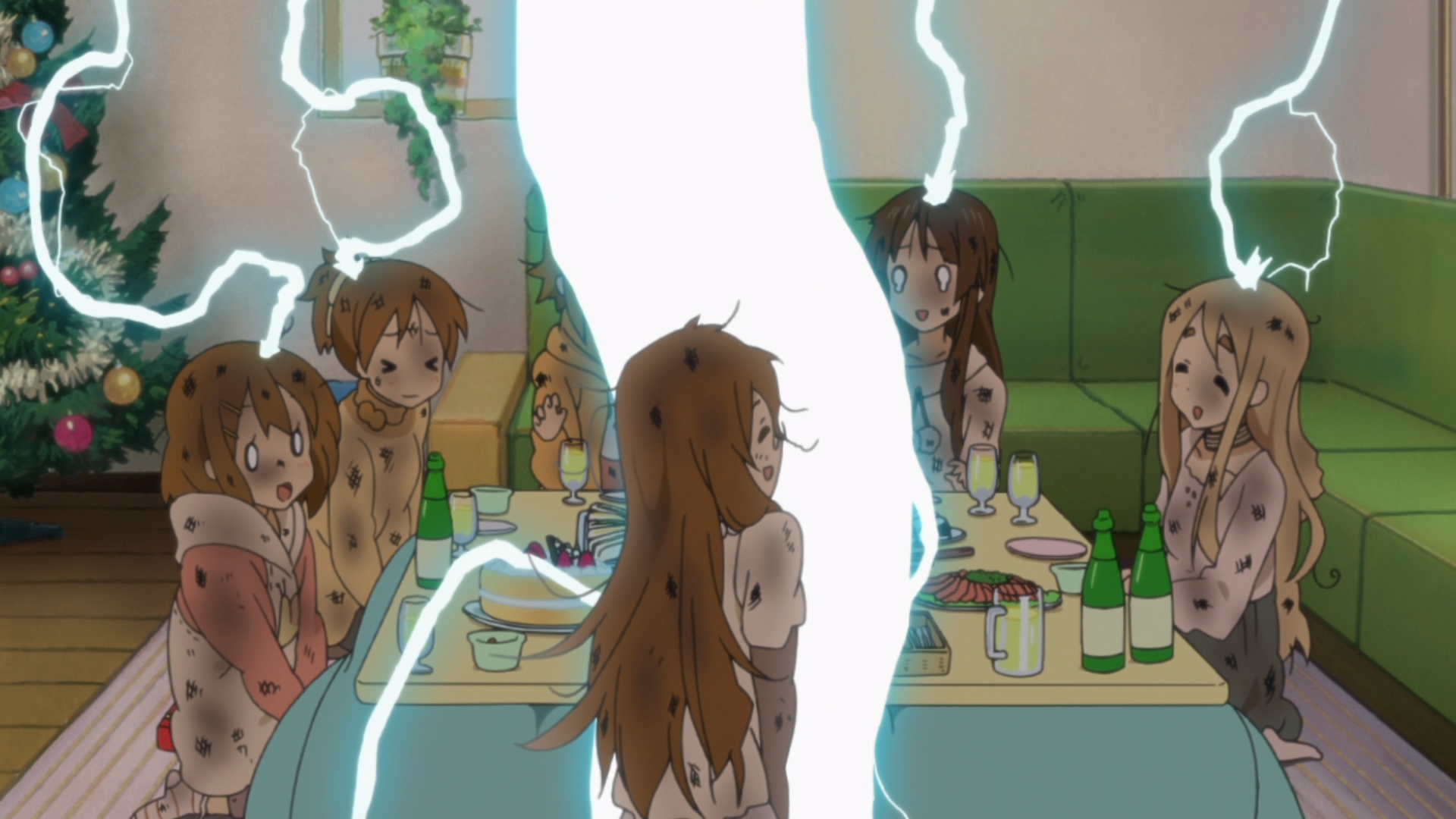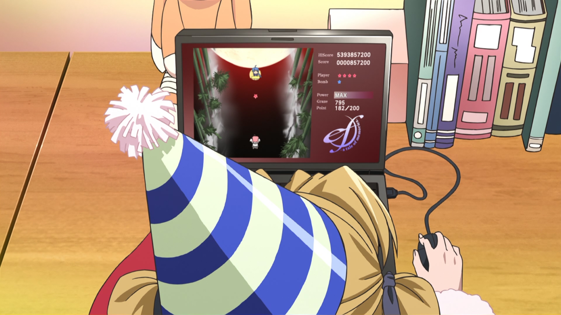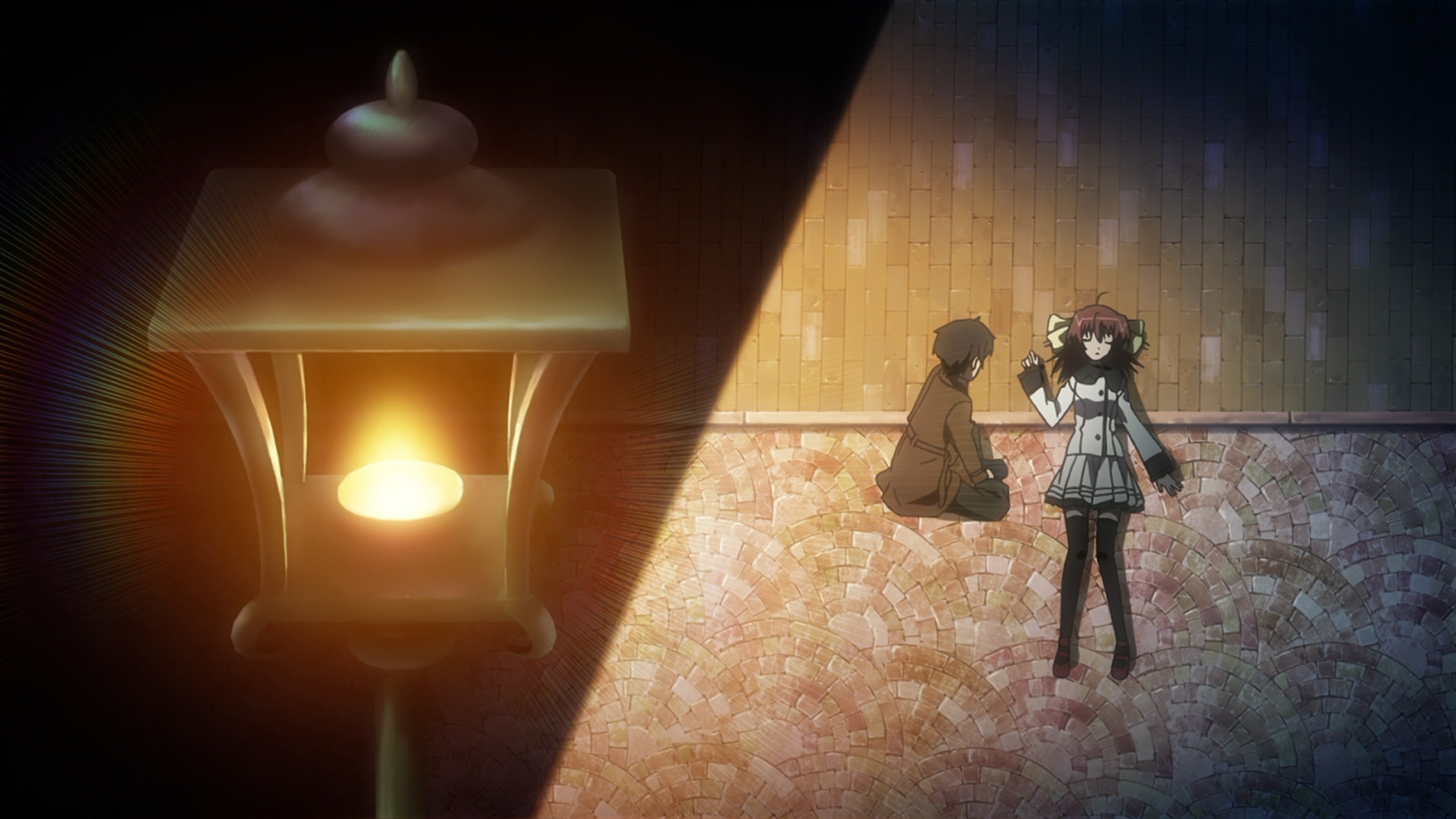 Еще немного лакистара. В первый просмотре этого не замечал, по понятным причинам. Вроде не особо это по тону подходит тайтлу, а с другой стороны они так аккуратно вписаны, что не выбиваются.