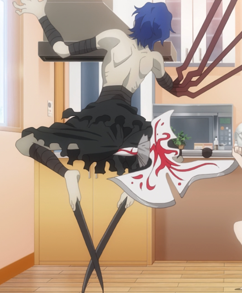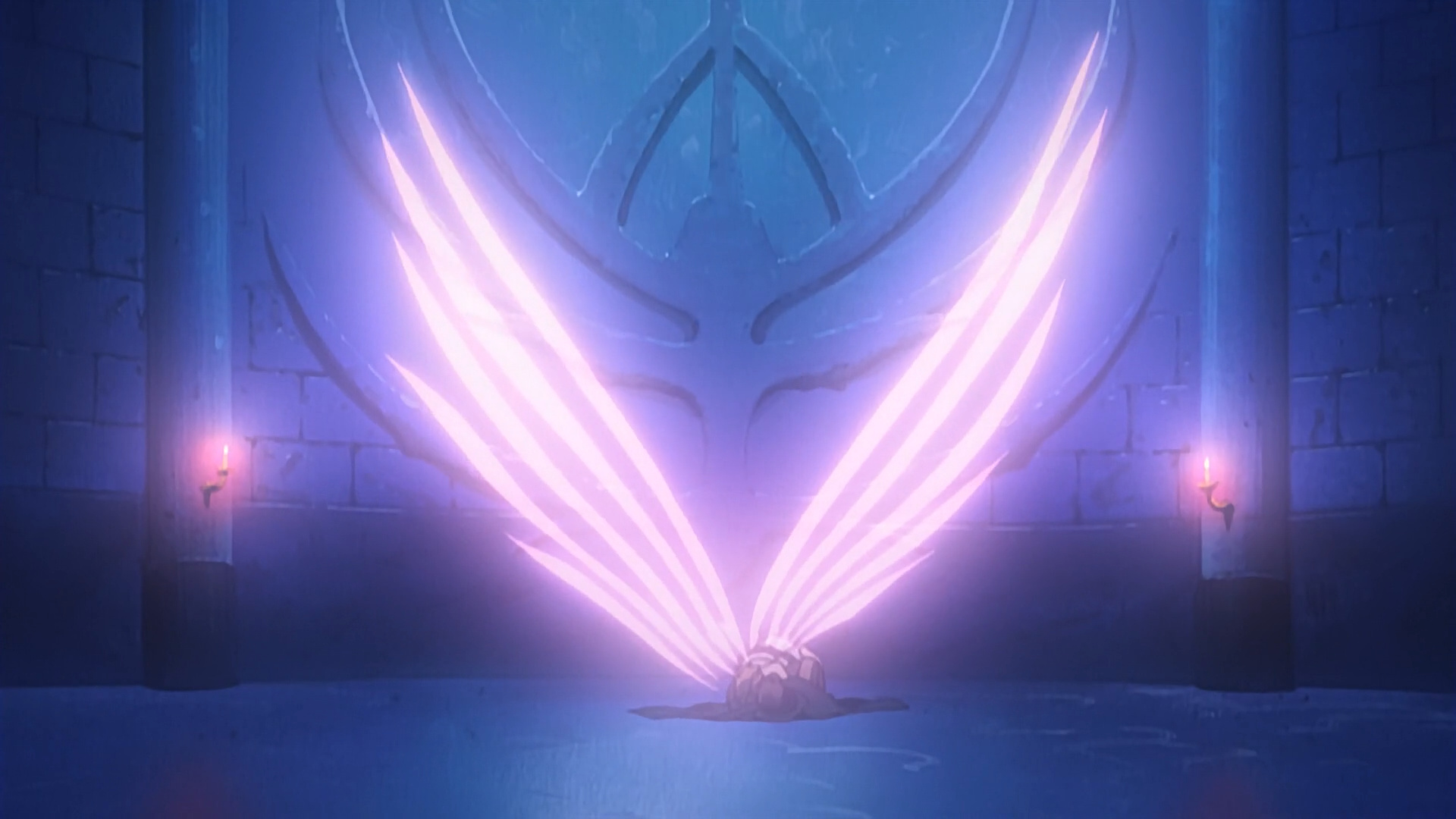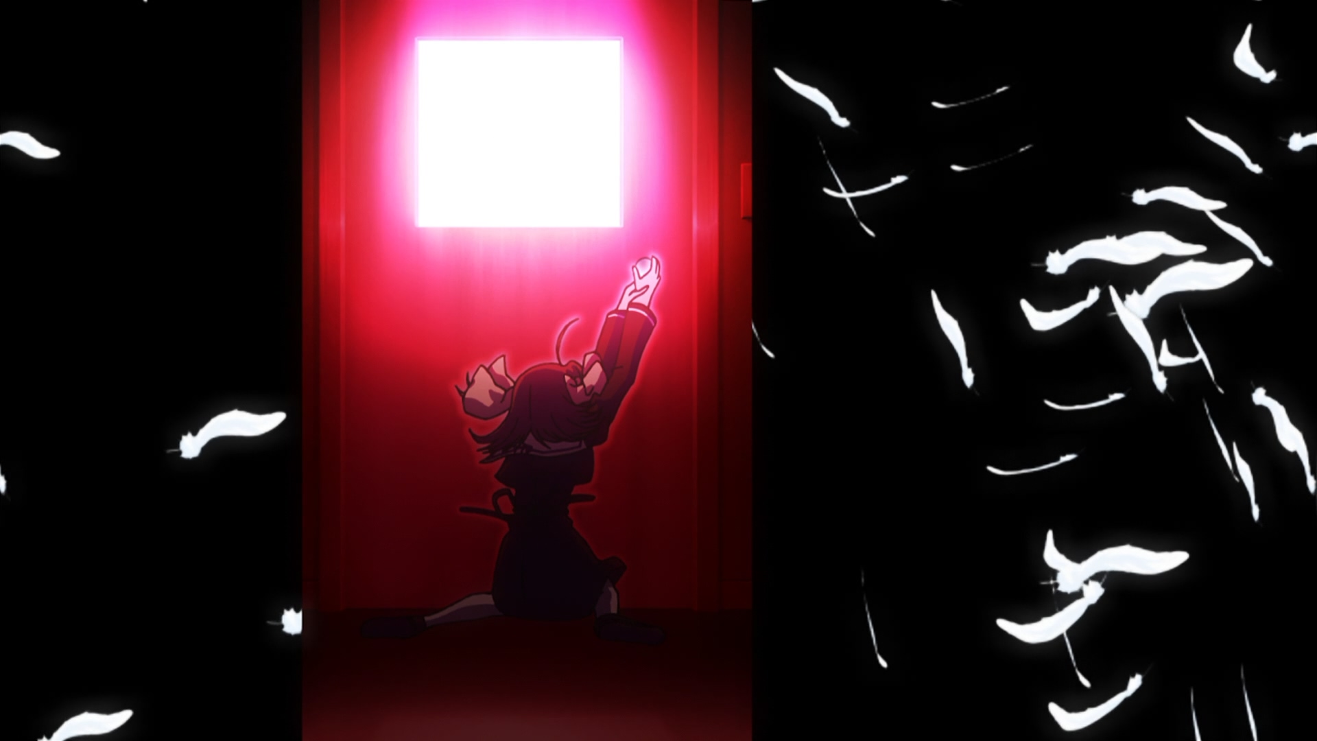 Еще немного лакистара. В первый просмотре этого не замечал, по понятным причинам. Вроде не особо это по тону подходит тайтлу, а с другой стороны они так аккуратно вписаны, что не выбиваются.