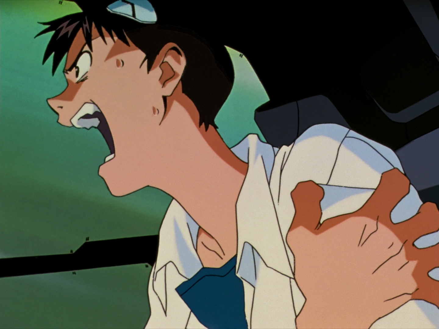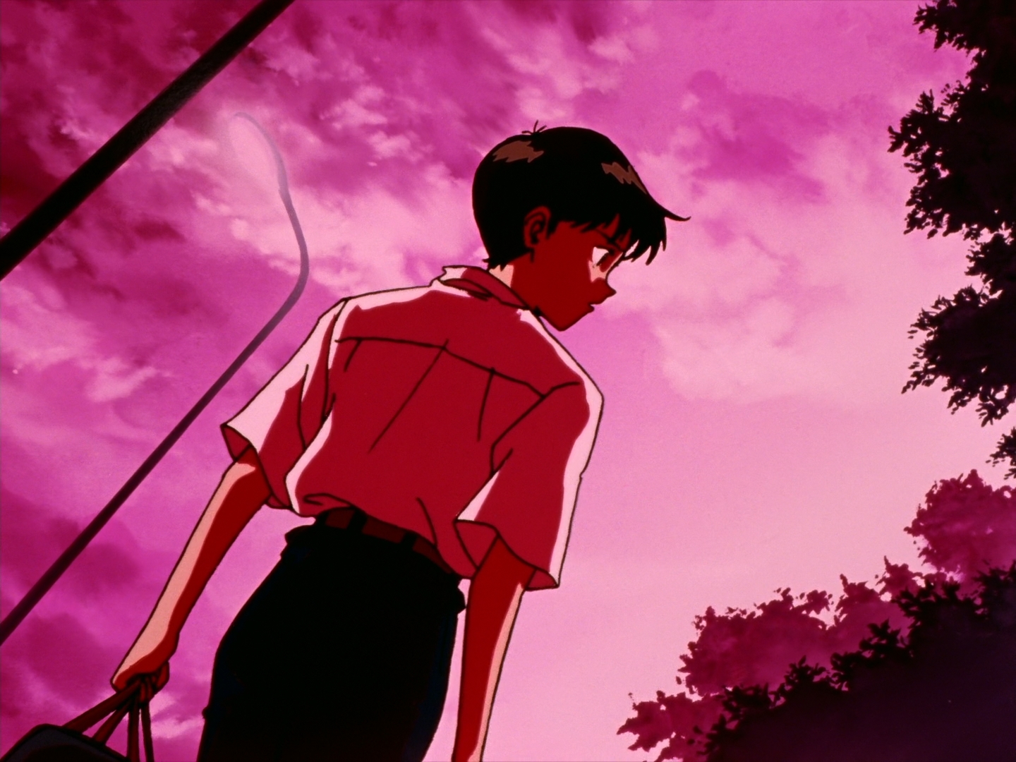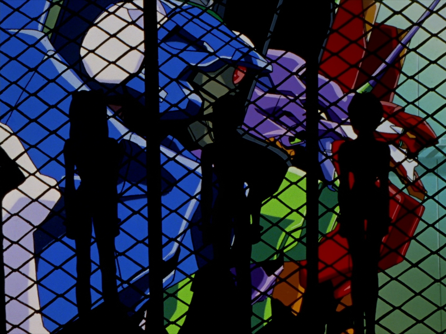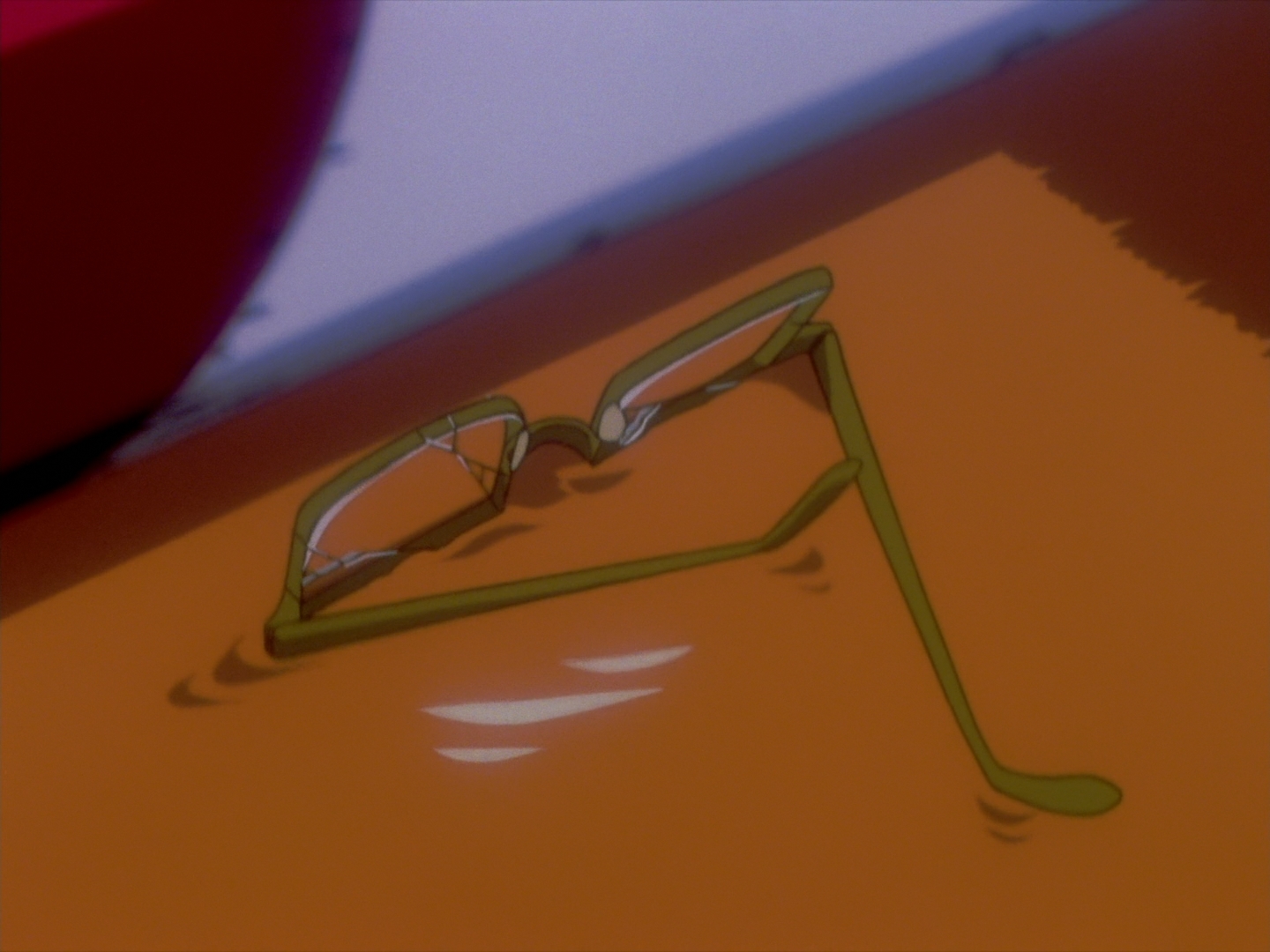 Хм, заметил ляп. Синдзи изначально сел в Еву без костюма, но в следующей серии, после 400% синхронизации, нам показывают видеосигнал из капсулы, а там плавает костюм, а не школьная форма.