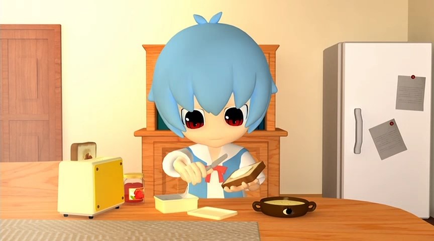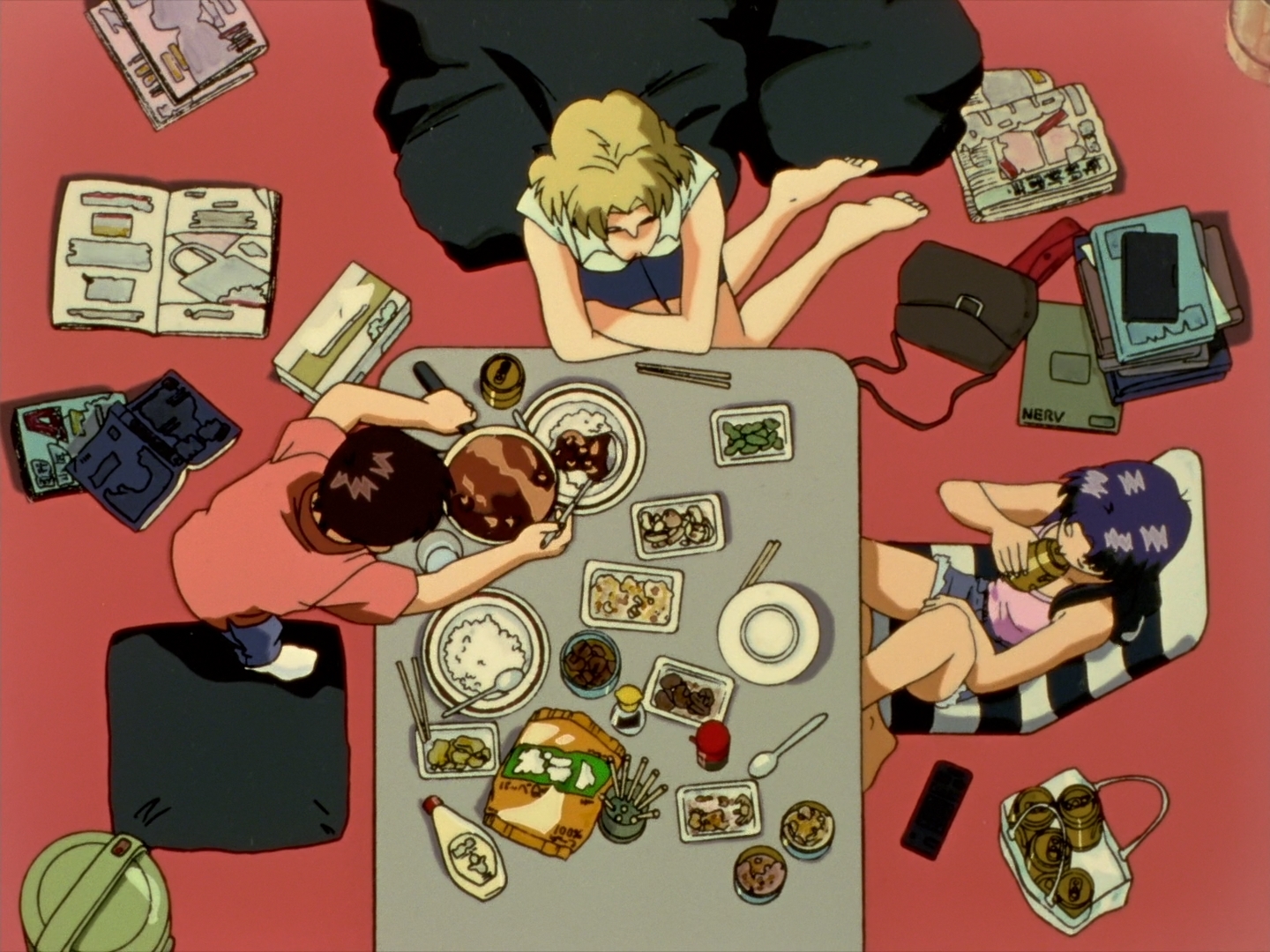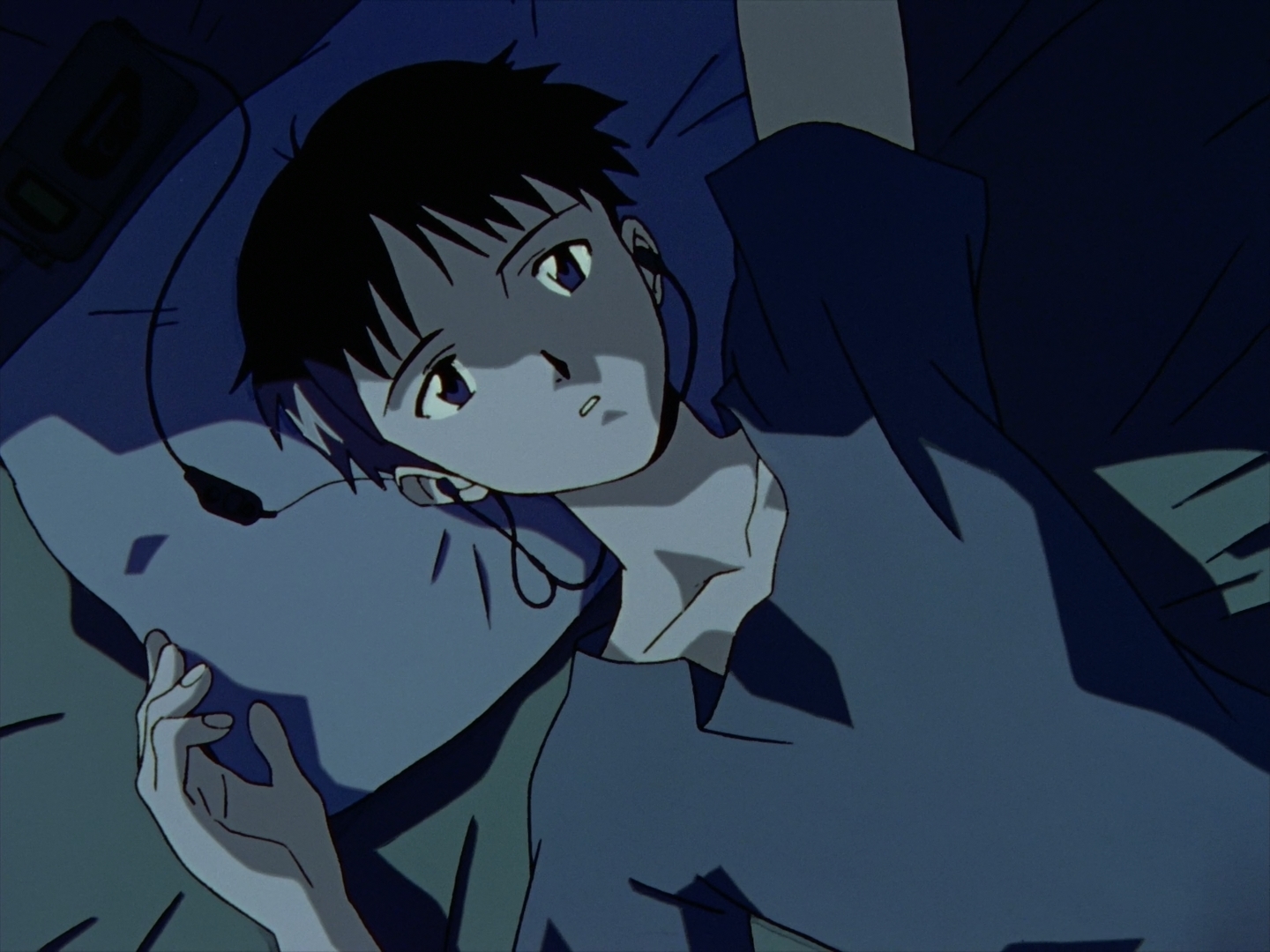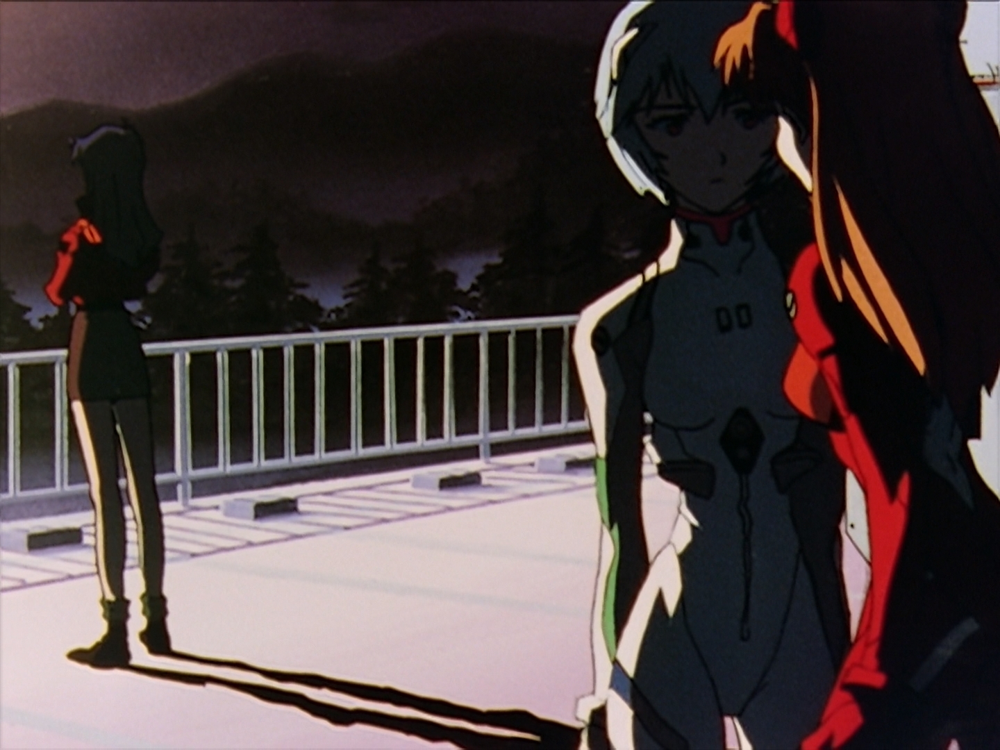 Хм, заметил ляп. Синдзи изначально сел в Еву без костюма, но в следующей серии, после 400% синхронизации, нам показывают видеосигнал из капсулы, а там плавает костюм, а не школьная форма.