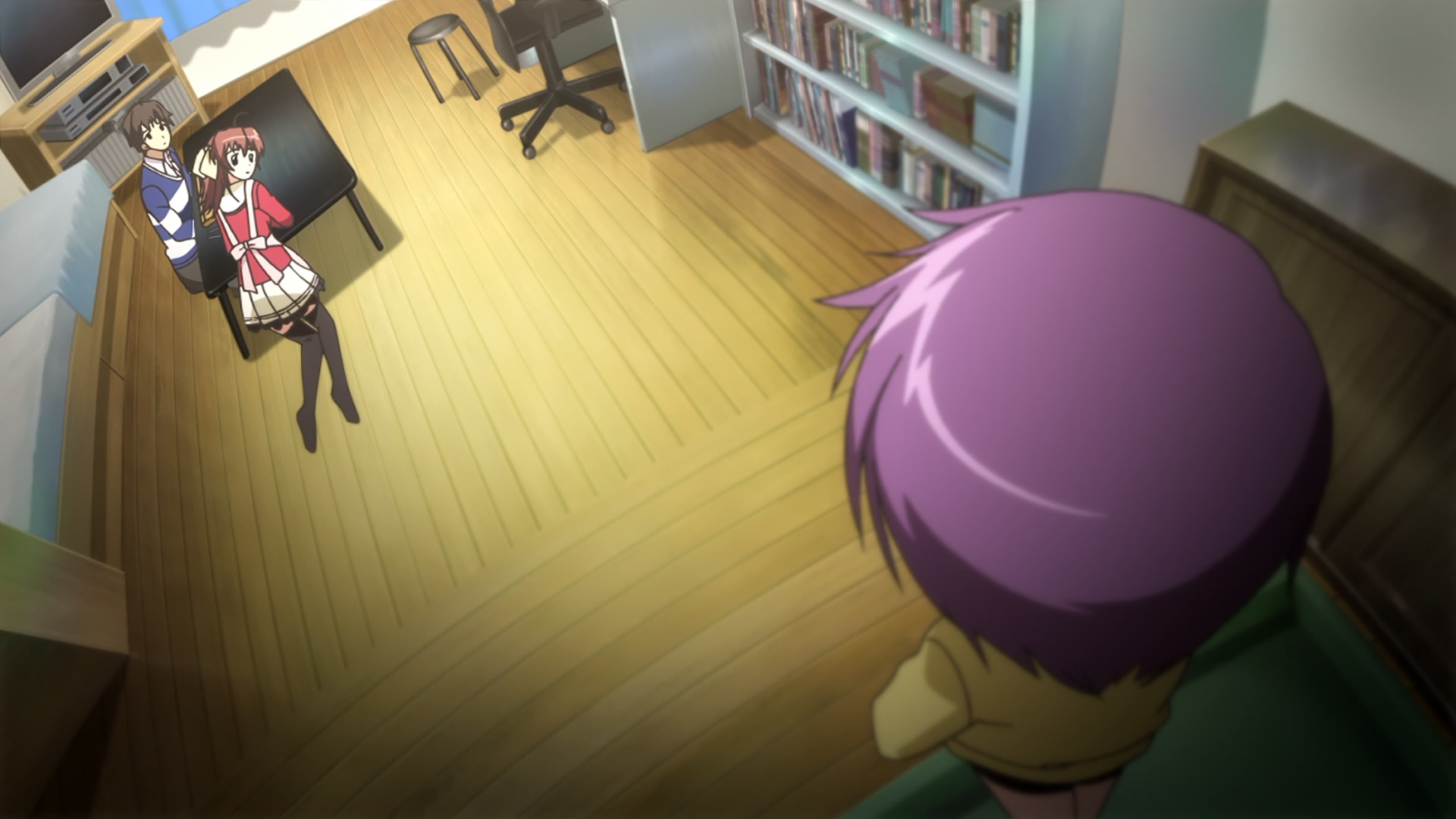 >storyboard: Soji Homura Хомура это, можно сказать, официальный псевдоним Симбо. Эпизод прямо заметно отличается от первого - никаких тебе забавных референсов, зато куча необычных и даже каких-то тревожных транзишенов, смен анимационных стилей, ну а про углы камеры можно и не говорить. А, и его любимый дом-на-развилке.
