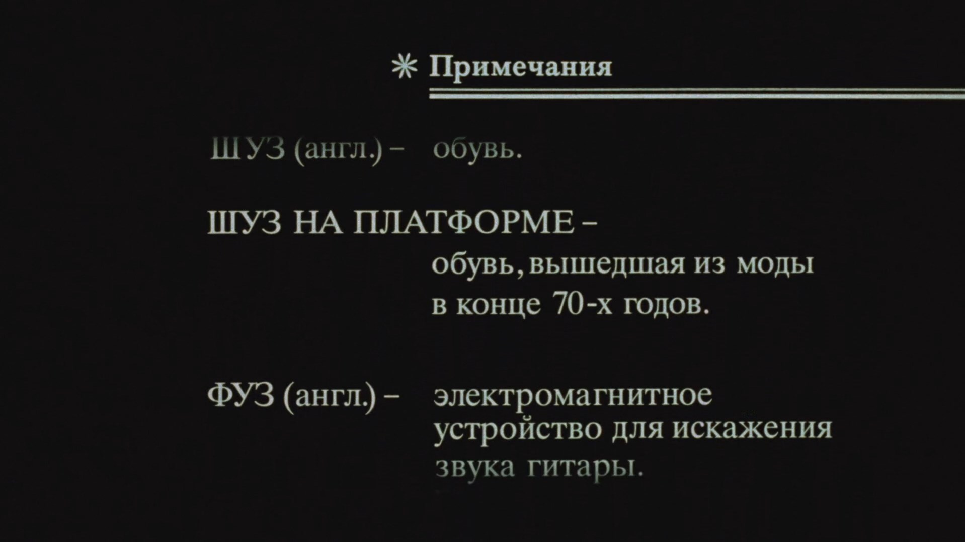 Интересный фильм. Больше в плане музыки конечно, но и сюжет оказался крутым особенно концовка. Вот чёт не ожидал даже... Порадовала отсыл очка на Солярис ещё, хоть я её сразу и не выкупил. И ещё почему-то я думал, что в фильме будет играть Цой, а он просто под конец фильма появился и спел песенку не как что-то плохое. Алсо, актрисы ГГини сожительствовала с режиссёром картины с 14-15 лет. Такой вот интересный факт... 7/10 https://www.youtube.com/watch?v=MzqgyfoWjLc