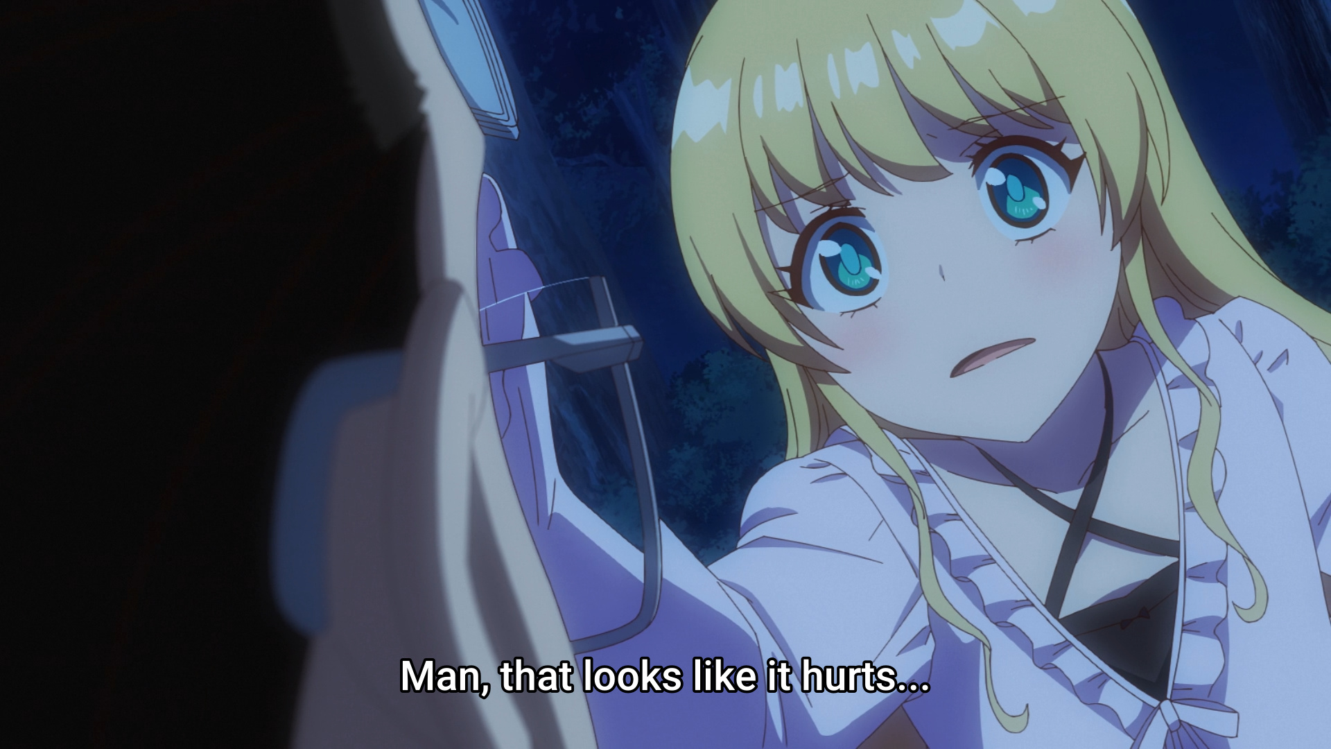 Вторая серия получше первой, где вторую половину считай просто показывали статичные кадры с музыкой. Но вот эта 3д бойня конечно, мде. Лучше бы побольше слайсика про попаданца из старика в лолю.
