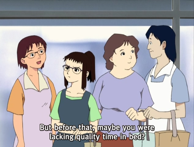 Что то мне его жену уже жалко. Роскошная телка прилипла к мужу, соседки доябывают сплетнями и советами, еще и эти три баки со своими охуенными экспериментами.