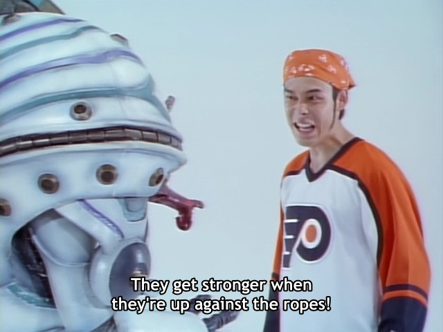 Таймренджеры Самый реалистичный сентай из тех что я смотрел по крайней мере он хочет таким казаться В этом сезоне все как в полноценной супергероике герои хранят свою тайну личности, а люди настолько проактивны что создали целое подразделение по борьбе с инопланетной угрозой. Все носят настоящие оружие конечно же. В тайтл напихали откровенных филлеров про готовку якисобы или коллективные выпивание межгалактического пива, так что весь этот закос под реализм не имеет смысла. Квоту в 50 эпизодов можно понять, но не простить. Да и в сюжетных эпизодах они как будто не могут дожать на полную, кроме 28 серии там сделали как надо. Злодеи по своей унылости соответствуютпростой кабанчик на подскоке, его тянка, сумасшедший киборг уровню сентая в этой вселенной, они здесь типа отряд дружинников из отбросов которые бьют палками всякую гопоту. Чисто комединые карренджеры были лучше. Не понимаю почему владельцы франшизы так сильно хотят сделать усредненный сирик с идеальным балансом драмы и комедии.