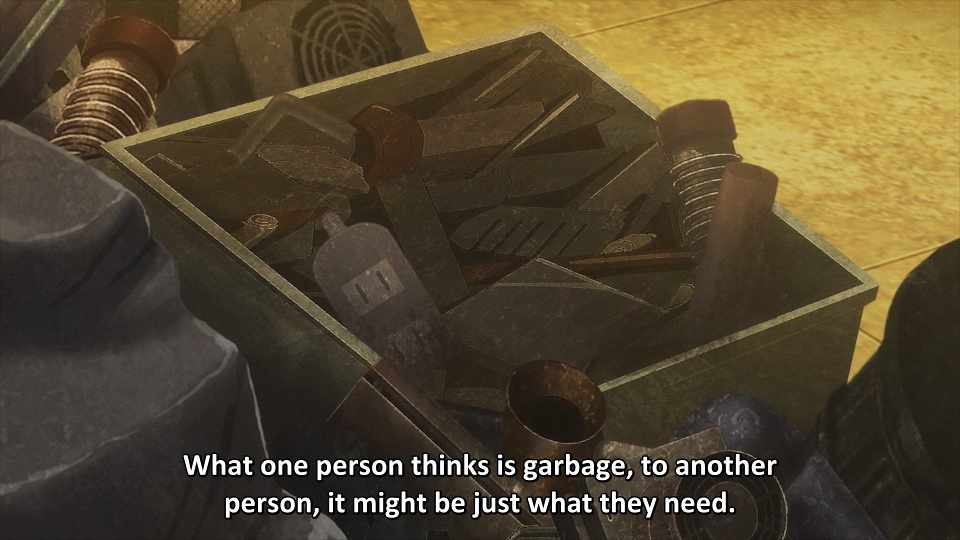 Девочка-андроид, которая видит сны, мальчик-андроид, который может превращаться в то, что представляет девочка, сказки о людях, в которые почти никто не верит, летающие киты, таинственные Мама с Папой, враждебные драколюди. Правда, это в основном статичные изображения под футуристическую музыку и диалоги. Анимация в виде сменяющихся кадров как бы есть, но это больше напоминает picture drama.