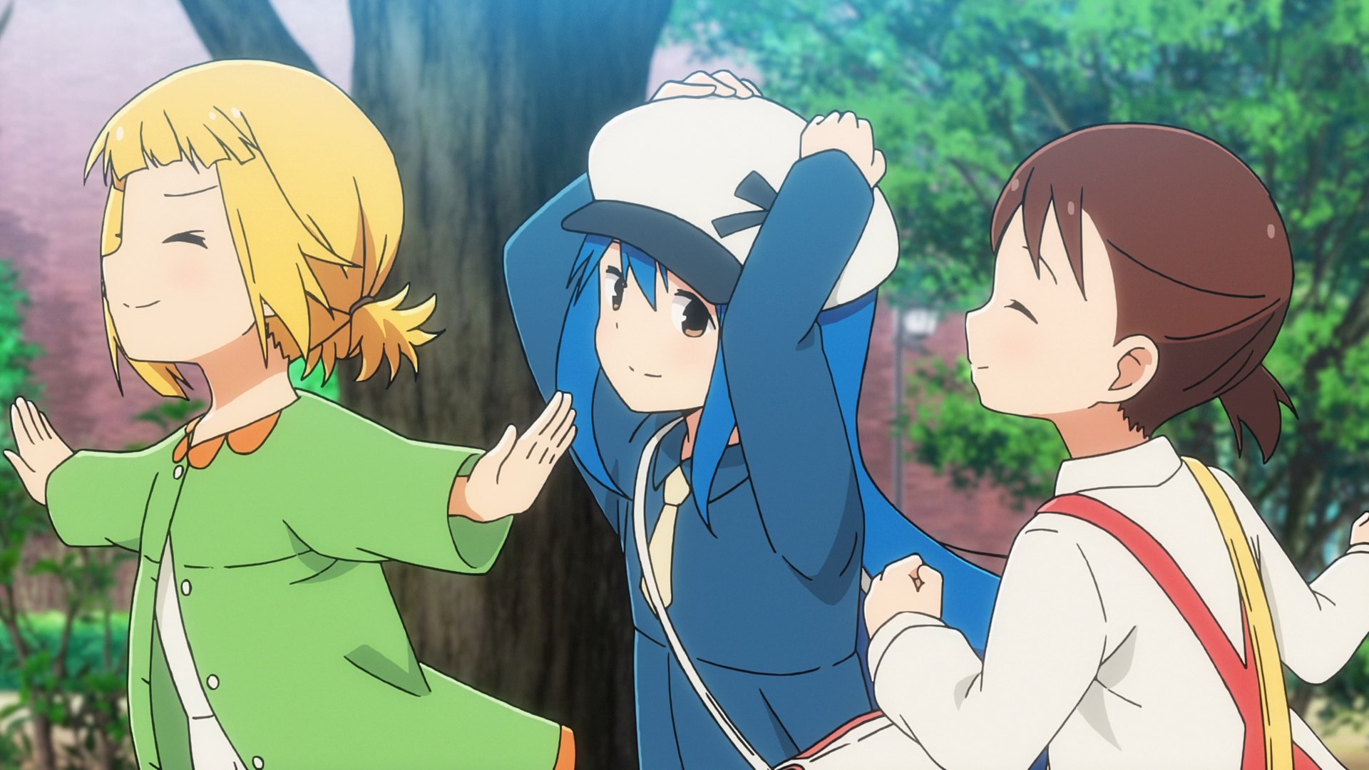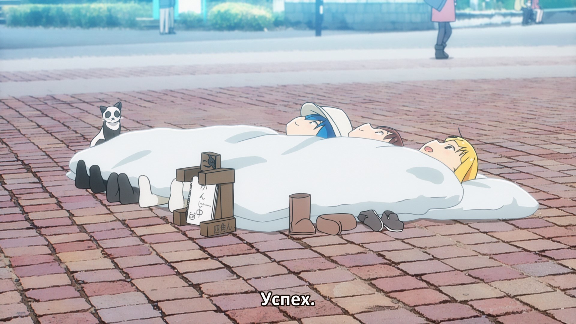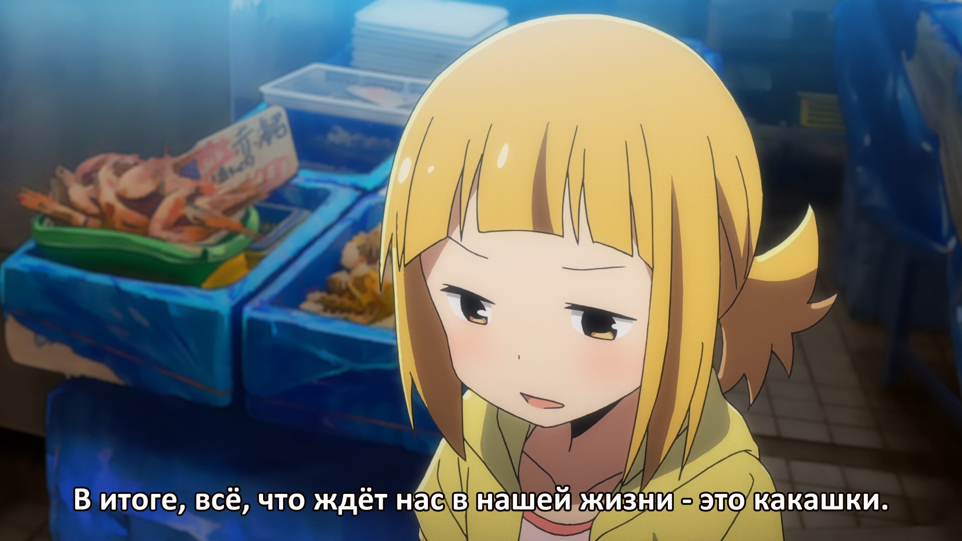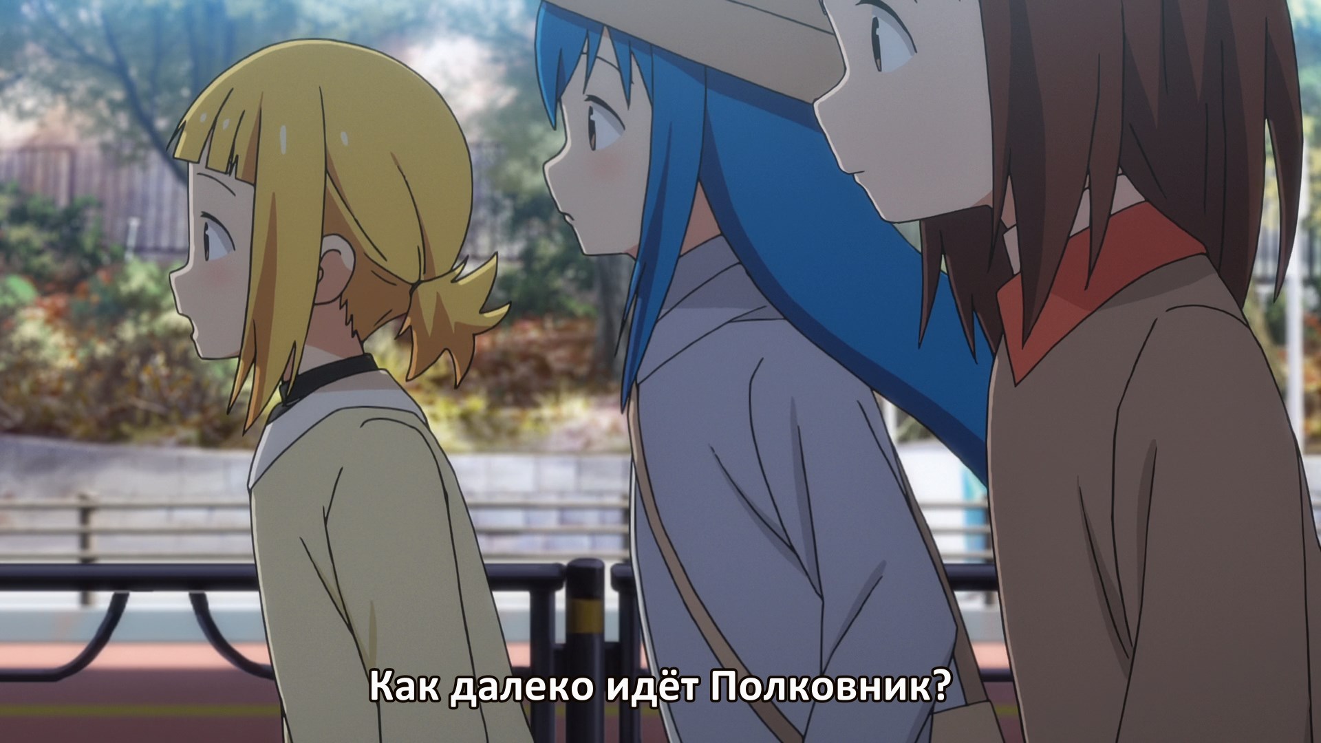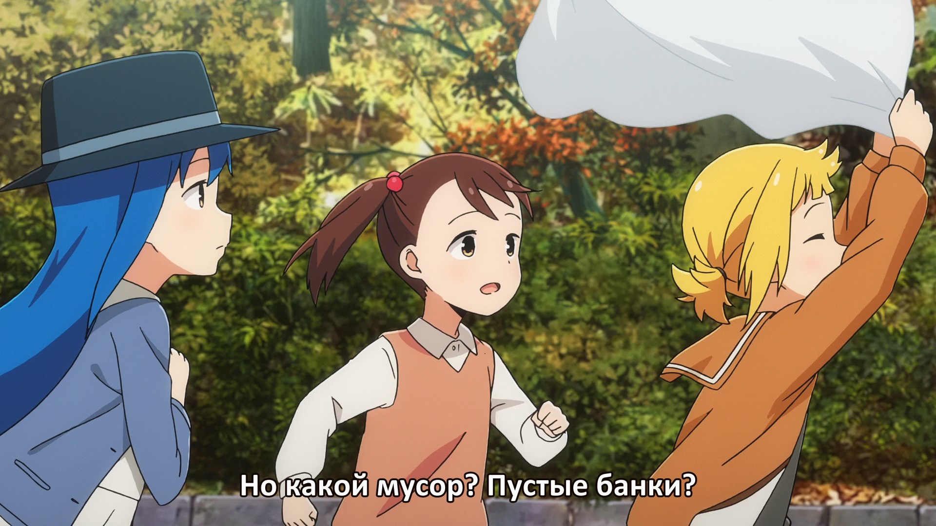 Милашный лолячий слайсик с огромным количеством шуток и большинство из них кстати правда смешные. Очень круто, что школьной темы здесь не было вообще. Девочки шароёбятся по городу и доёбывают граждан либо на каникулах, либо в свободное от учёбы время. Второстепенные граждане всегда относятся к ним с пониманием и всячески подыгрывают. Сорт оф талисман городка они типа. Любимая лоля наверное кинпацу бака-гренка как и всегда. Орал с её дурачеств. 7/10