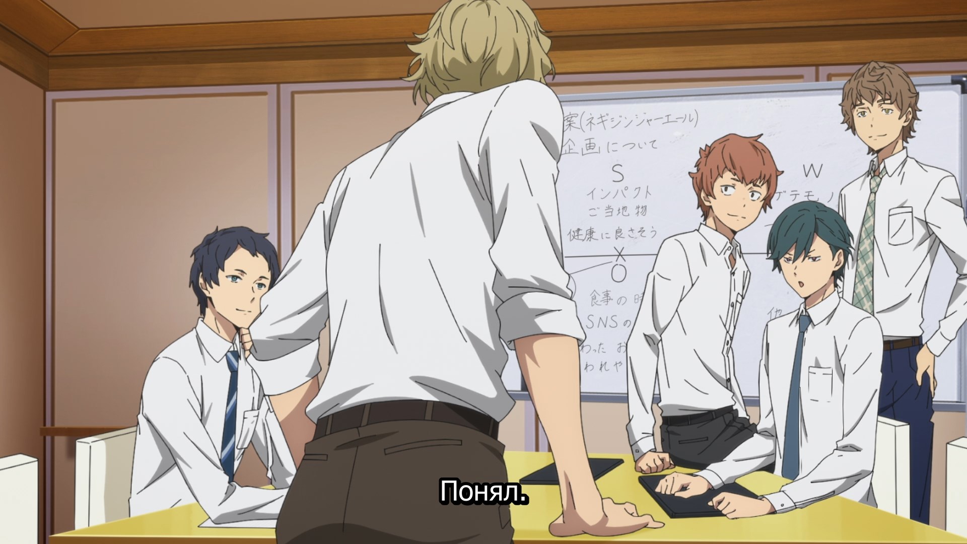 В дорамке не показали это, кстати. Челов вызвали на работу, они вчетвером свалили, а что дальше делали их партнёры - не известно. В аниме же они нашли чем заняться.