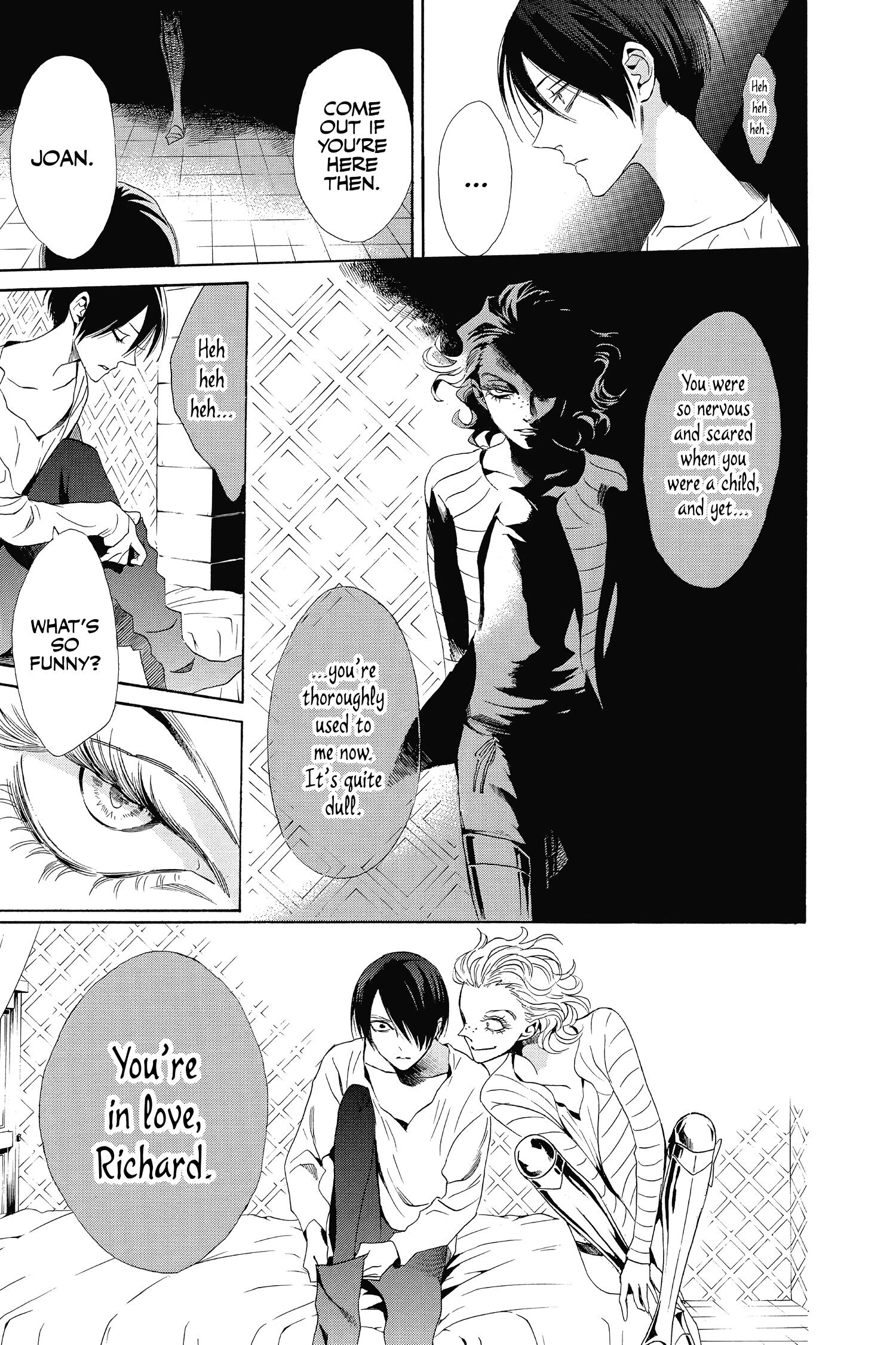 Насколько помню по аниме, Жанна всегда говорила с Ричардом с насмешкой, в том числе когда обнимала его. А тут такой кадр, будто она его близкий друг. И раньше тоже (4) стоит рядом, задумавшись.