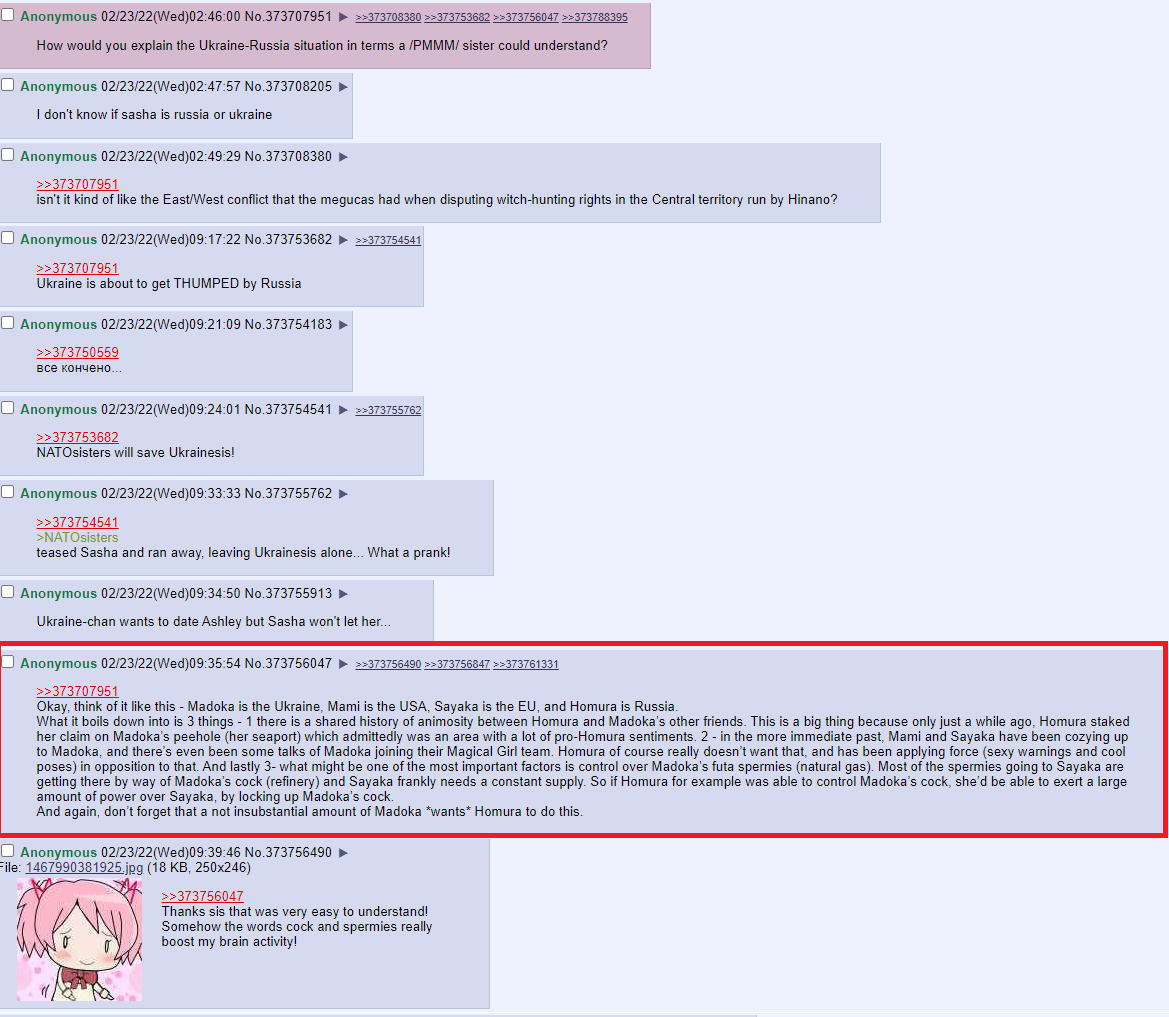 >>149916 Это не совпадение, а скорее феномен Баадера-Майнхофа. Не происходи сейчас эти события на Украине, ты бы и не обратил внимания на похожие вещи в аниме.