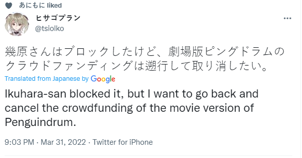 Смотрю что некоторые японцы, на которых я подписан в твиттере, в последние пару дней зачем то горят от Икухары . В конечном итоге полез разобраться - оказывается он типа сменил имя и в кино-версии пингвиндрама он теперь идет как Бонсуа Икухара. А проблема это потому, что выглядит(по их мнению) словно шутка над теми, кто совершает coming out, а значит он мудак и надо бы его кэнсельнуть.
