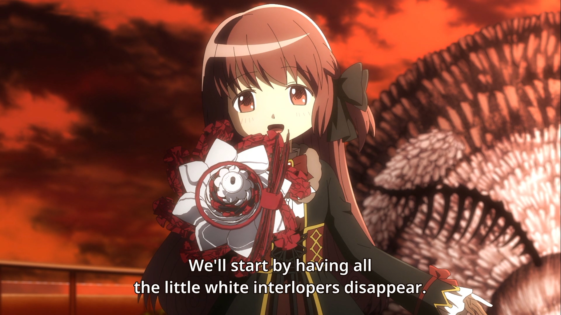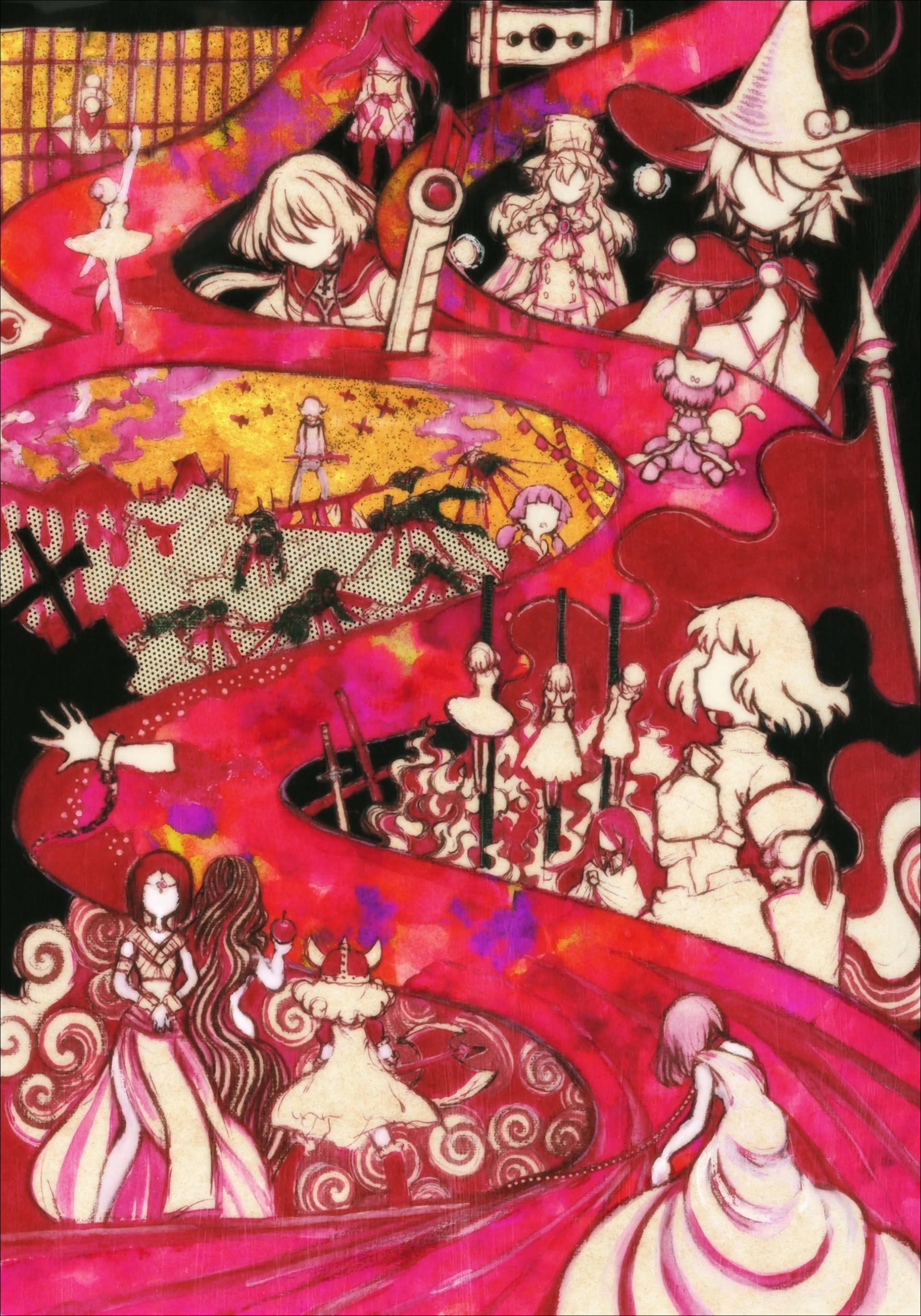 Я ожидал что эти четыре эпизода если и не будут повторять сюжет игры детально(в прошлых эпизодах он слишком уж отклонился), то в общих чертах все равно пойдут по ее пути. Вместо этого получилось что-то вроде адаптации school days — "плохой рут", в котором всех ждет неудача и никто не достигнет своих целей. Крушение надежд. Провалившаяся революция в забытом таймлайне. Этот финал куда депрессивнее финала оригинальной Мадоки, лишенный его катартического эффекта. Мне интересно с какого момента Доро-ину решил пустить сюжет в этом направлении — не думаю, что с самого начала. Такое чувство, что через второй сезон он выражает собственное эмоциональное состояние, в которое, как можно представить, его ввергли эти несколько лет проблем продакшена, с которыми он столкнулся. Все же он художник. Кстати об этом - он ведь сюрреалист и во втором(где его уже не сдерживал сюжет игры) видны контуры некоторых идей, которые он туда вплел и зашифровал. Явно есть что покопать любителям спгс. В общем 8/10 всему сезону. Хватает шероховатостей, есть проблемы, и местами весьма серьезные, с темпом и сюжетной конструкцией, но в целом это красивое и эмоциональное аниме с ярким и изобретательным артом и режиссурой, увлекательным сюжетом и интересными темами.